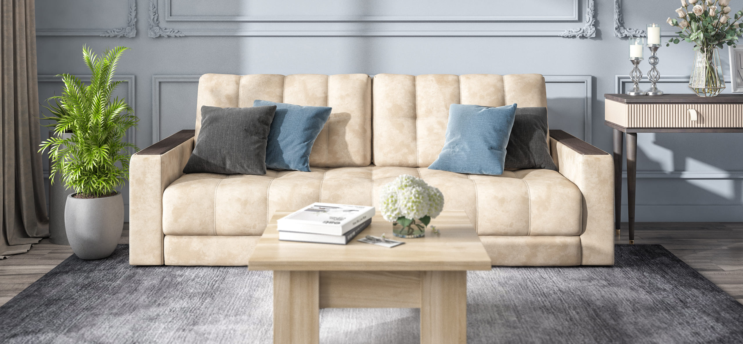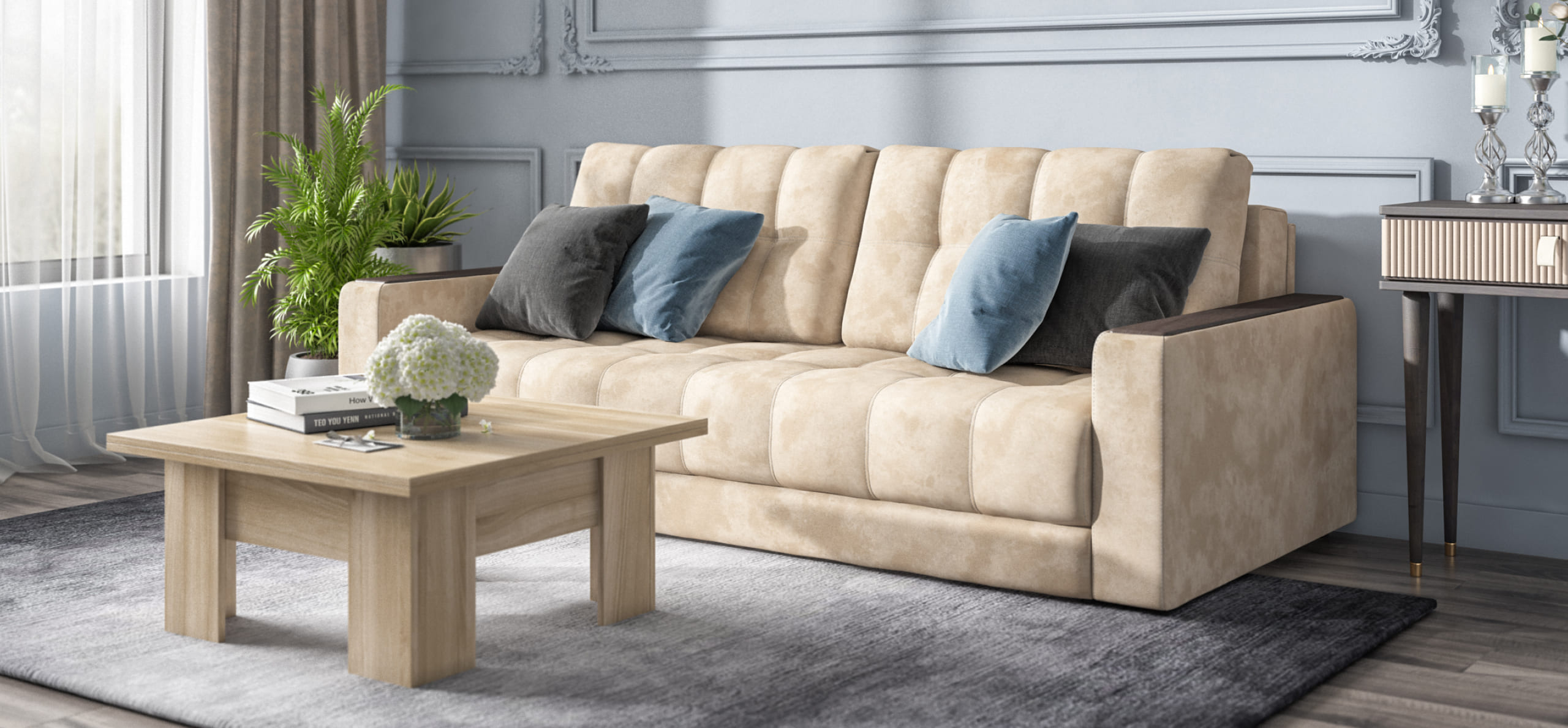 Благодаря дополнительному пуфу, который Вы можете приобрести к нему отдельно, прямой диван с легкостью становится полноценным угловым диваном.