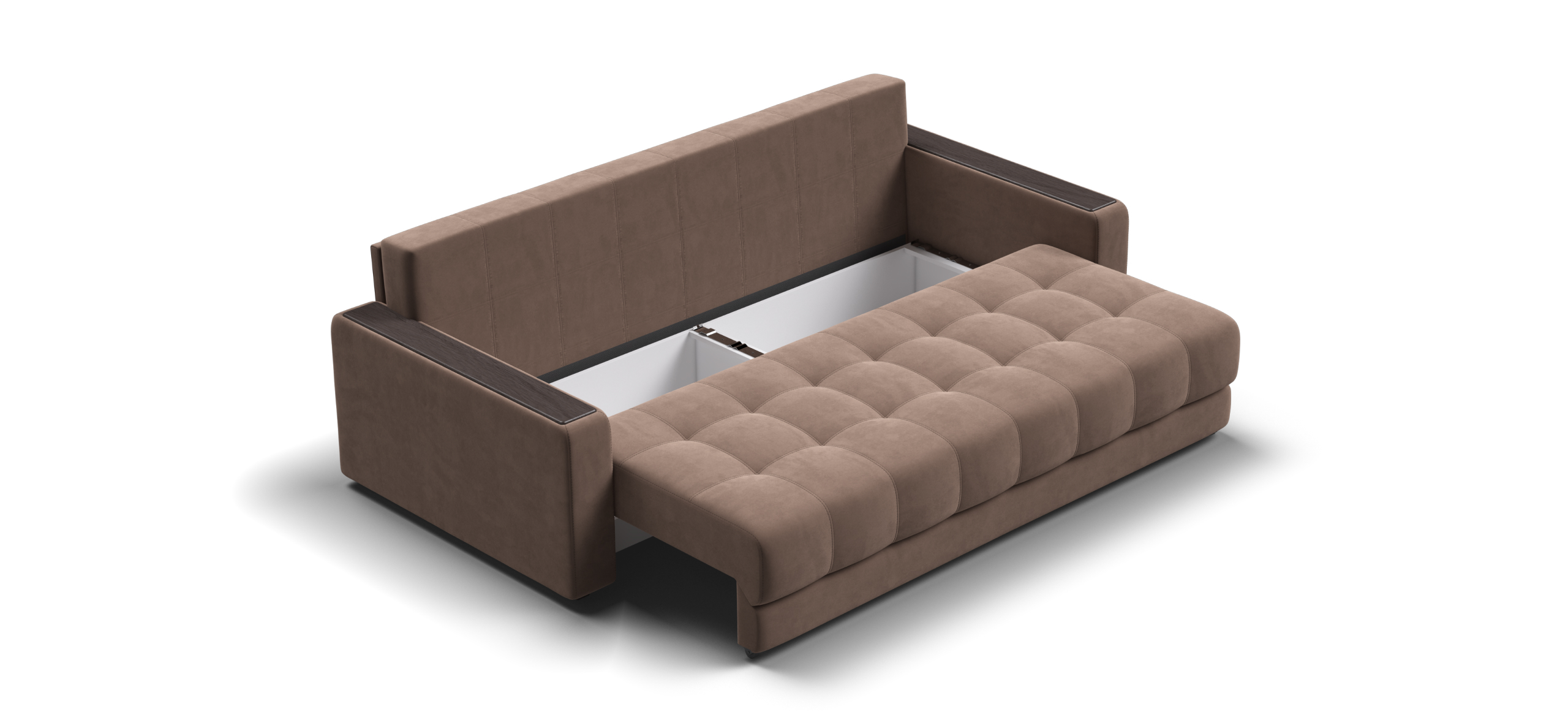 Легкая трансформация в три положения создаст для Вас максимально комфортный отдых, а улучшенное анатомическое основание в диване обеспечит Вам здоровый сон. Спинка защищает от соприкосновения со стеной во время сна.