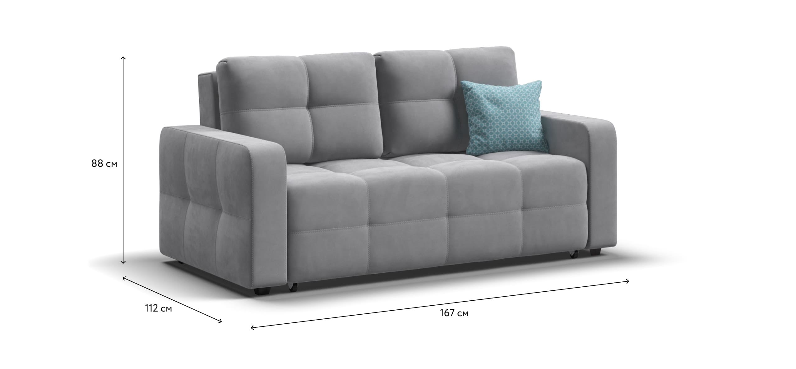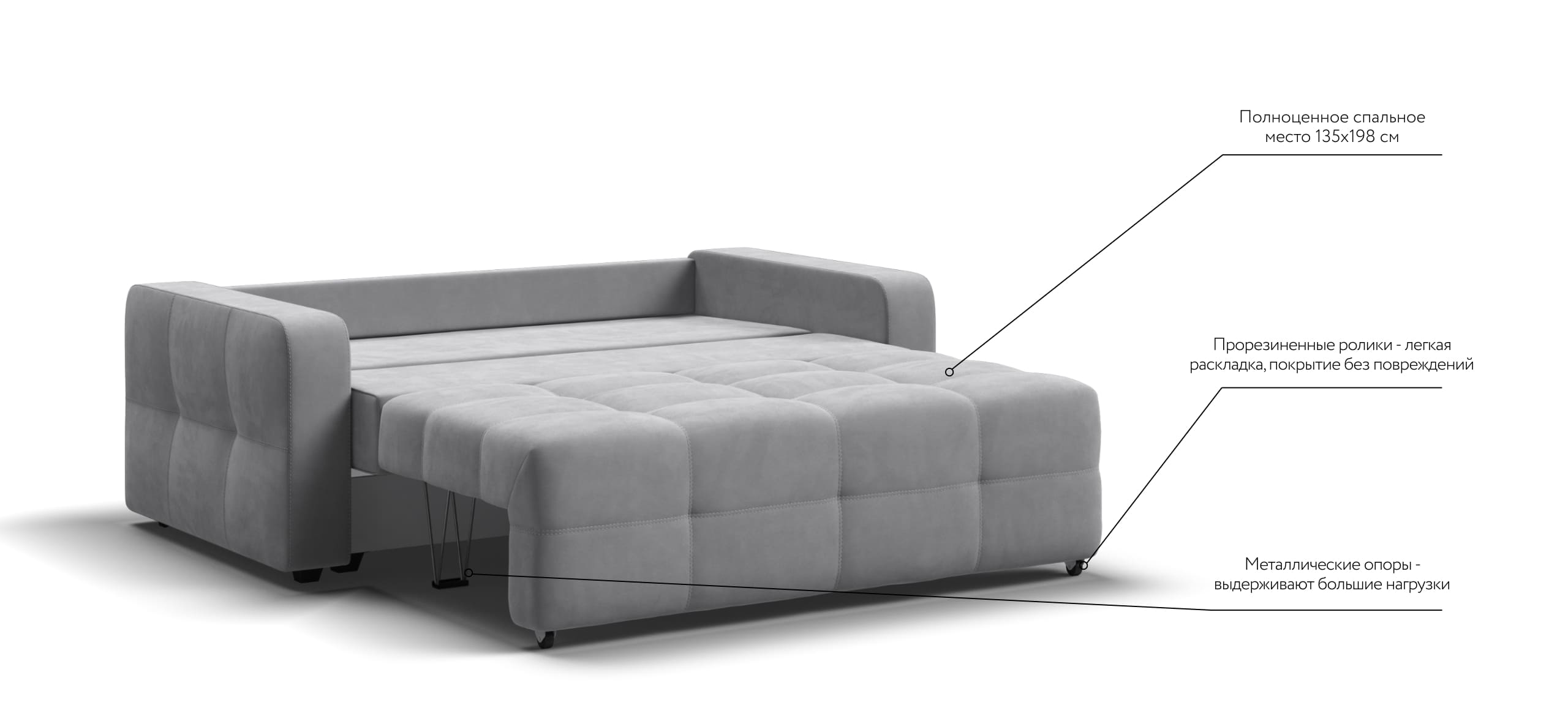 Небольшой размер дивана сочетается с оптимальным спальным местом, на котором могут с комфортом разместиться 2 человека.