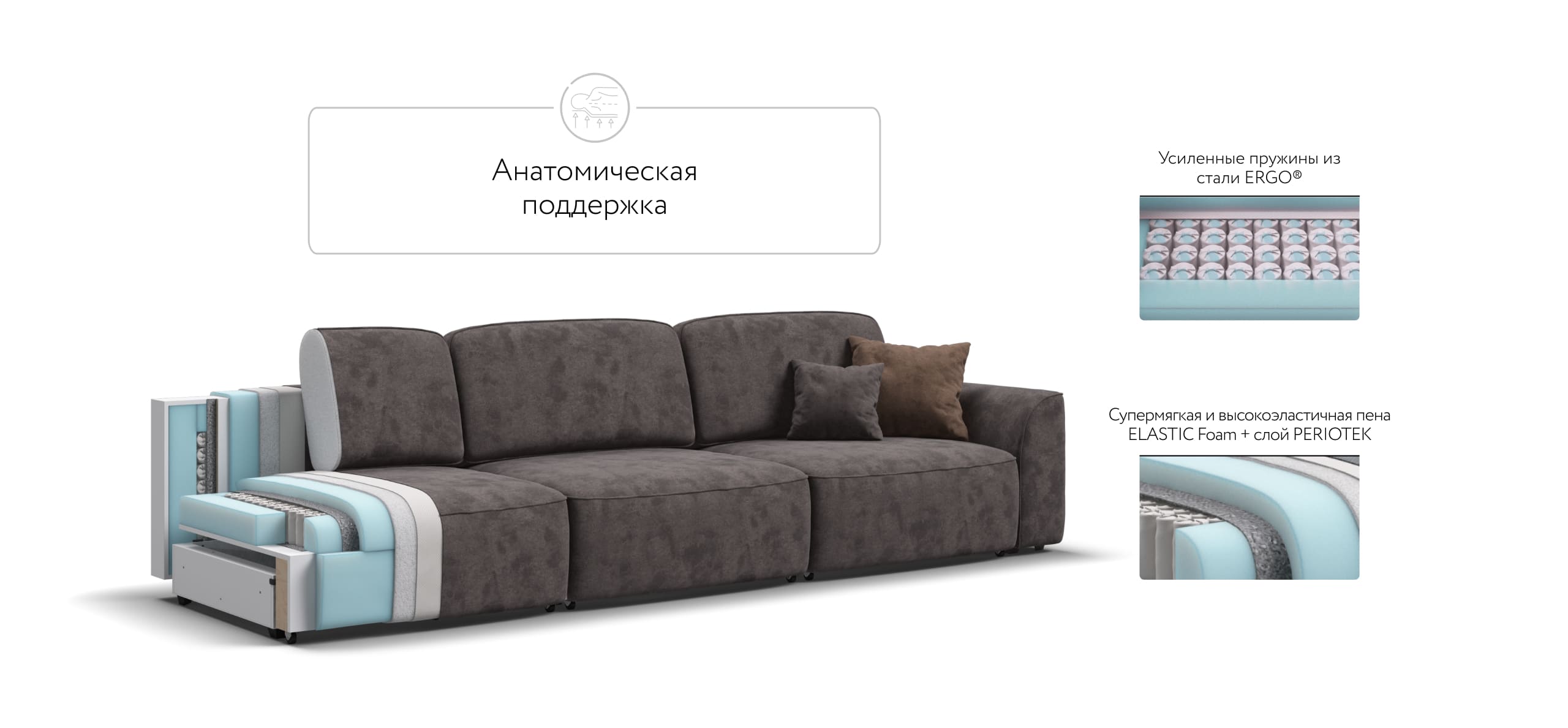 Комфортная посадка, скругленные линии, объемные подушки - диван, который наполнит ваш дом уютом и комфортом.