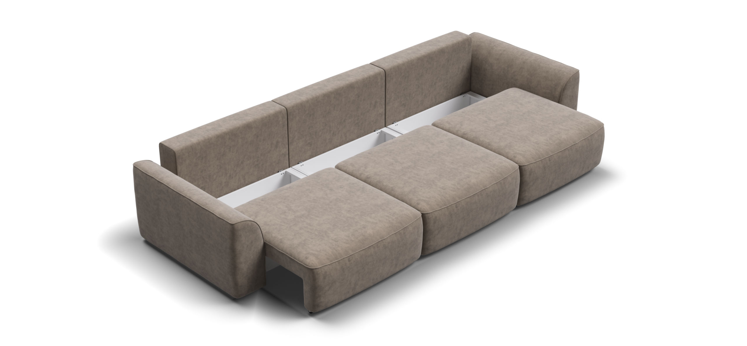 Приглашайте в гости большую компанию - диван вместит всех! Каждое посадочное место можно выдвинуть вперед и получить диван с правым или левым углом, а также получить П-образную форму дивана. А в разложенном виде диван превращается в огромное спальное место.
