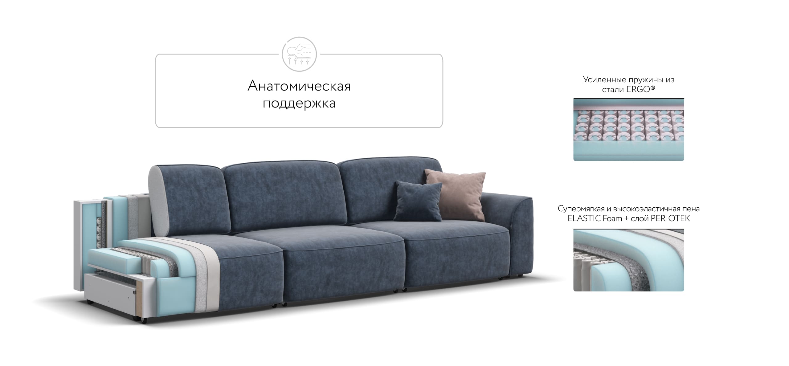 Комфортная посадка, скругленные линии, объемные подушки - диван, который наполнит ваш дом уютом и комфортом.