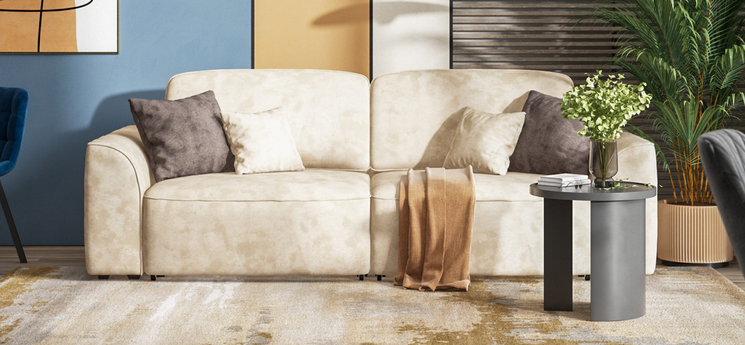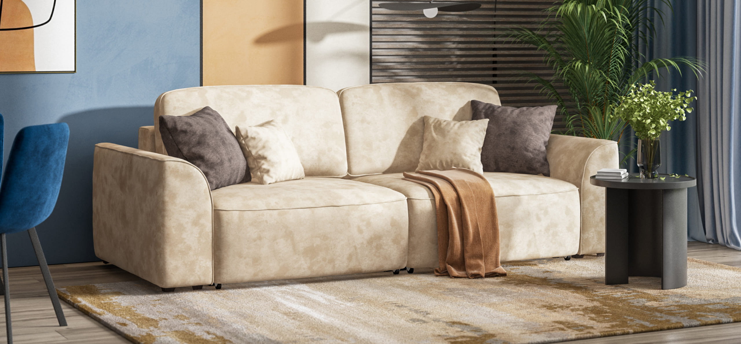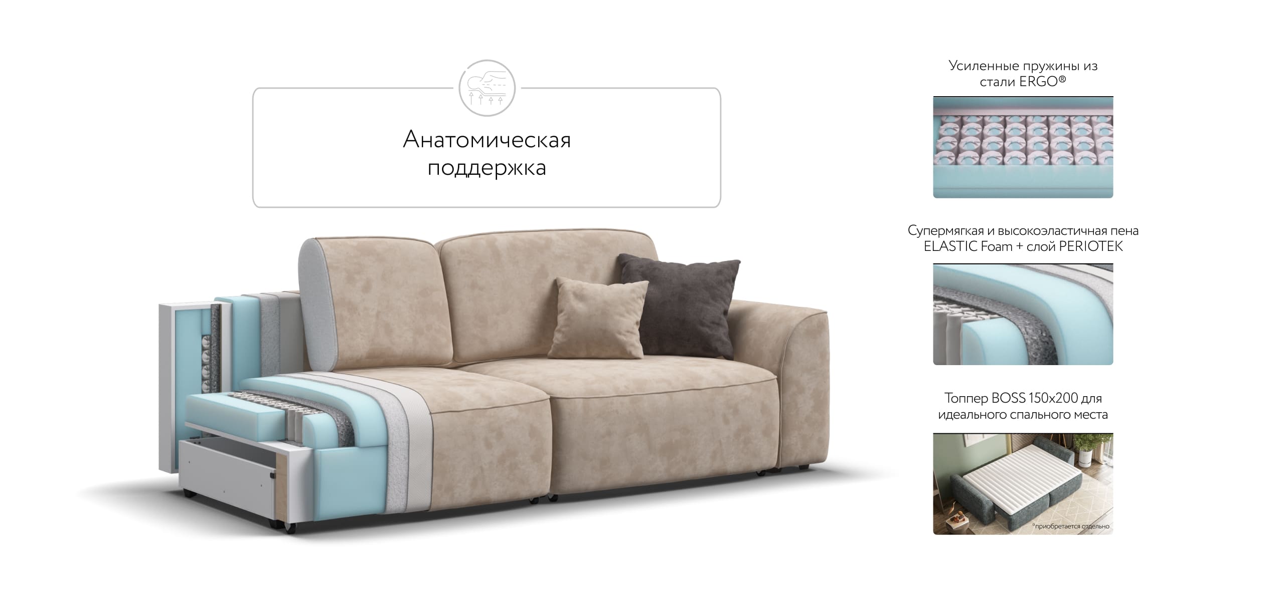 Комфортная посадка, скругленные линии, объемные подушки - диван, который наполнит ваш дом уютом и комфортом. Каждое посадочное место можно выдвинуть вперед и получить угловой диван, на котором с комфортом разместится небольшая компания. А в разложенном виде диван превращается в комфортное спальное место.