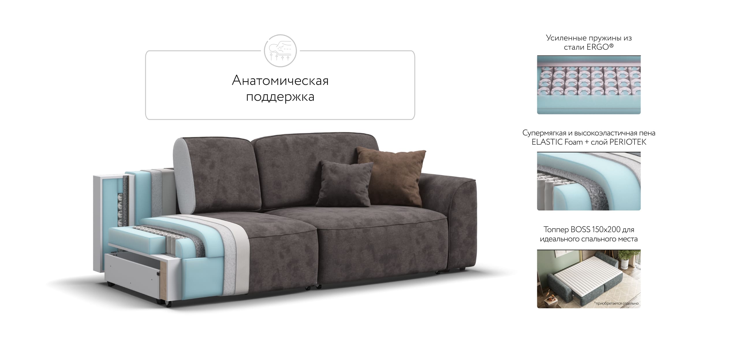 Усиленный блок независимых пружин ERGO + слой PERIOTEK придают объём и упругость.