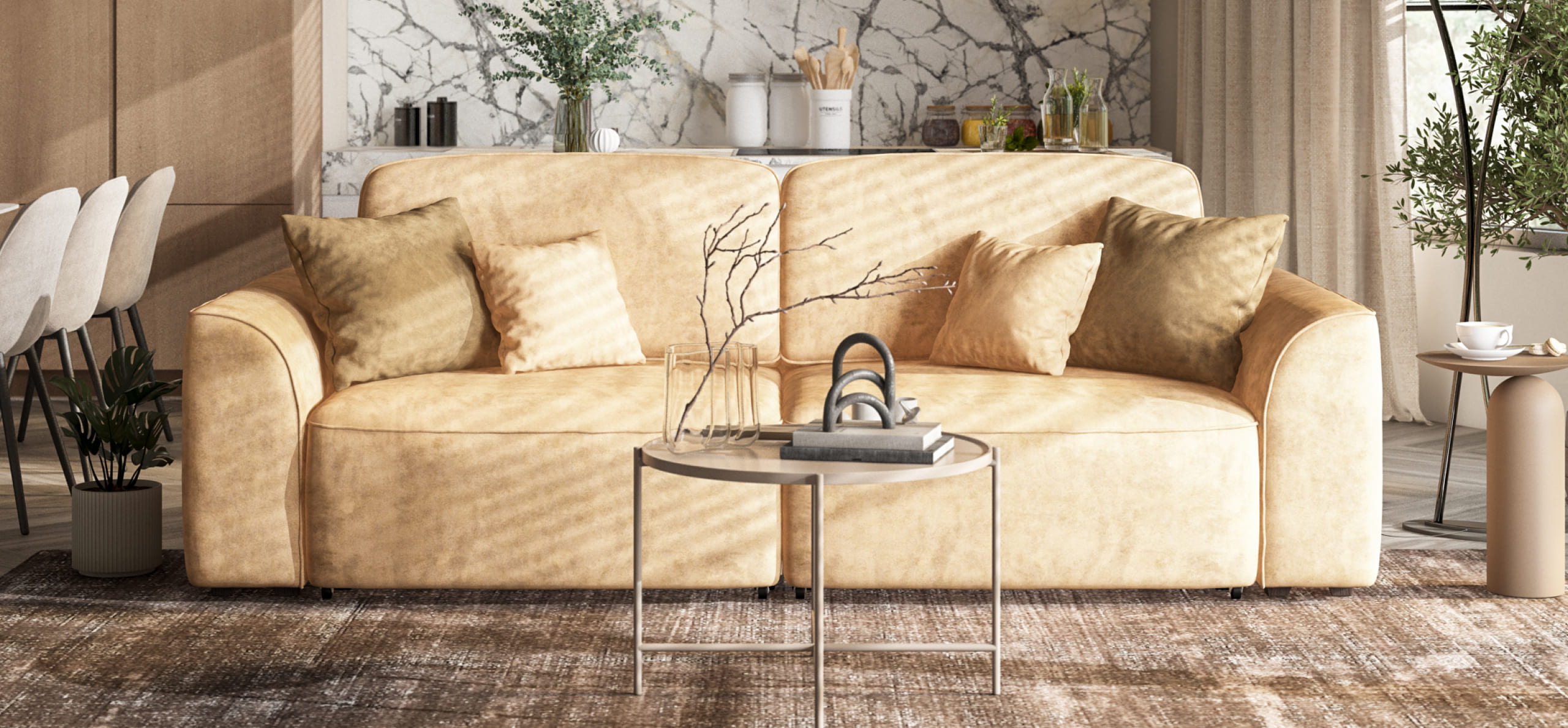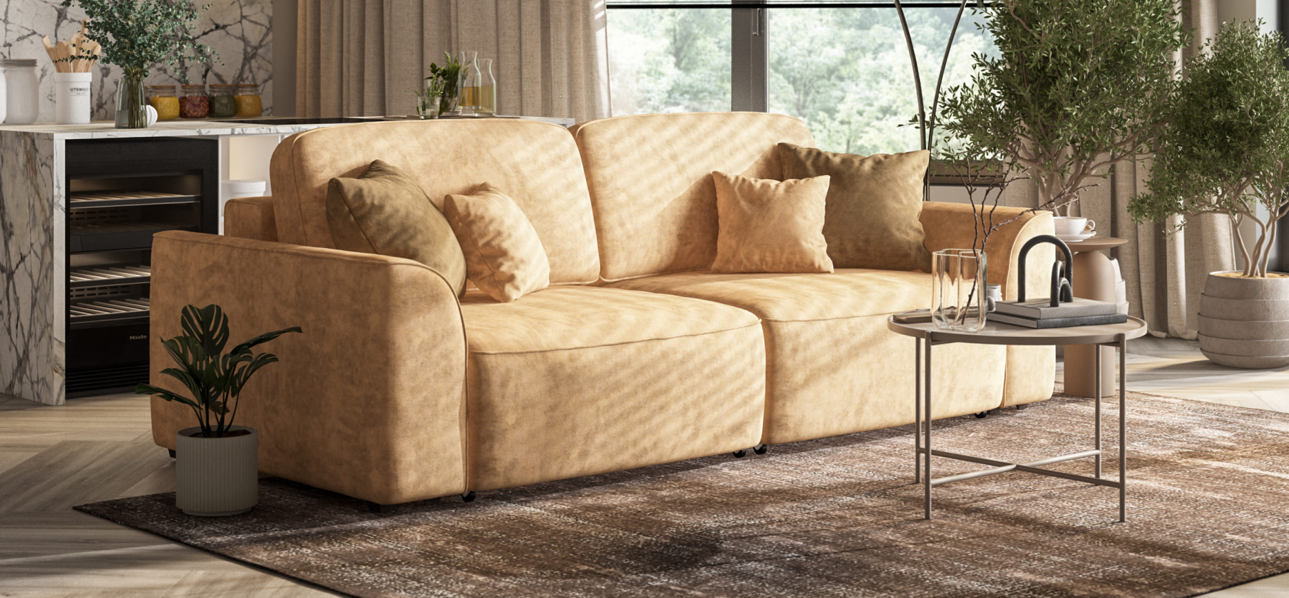 Комфортная посадка, скругленные линии, объемные подушки - диван, который наполнит ваш дом уютом и комфортом. Каждое посадочное место можно выдвинуть вперед и получить угловой диван, на котором с комфортом разместится небольшая компания. А в разложенном виде диван превращается в комфортное спальное место.