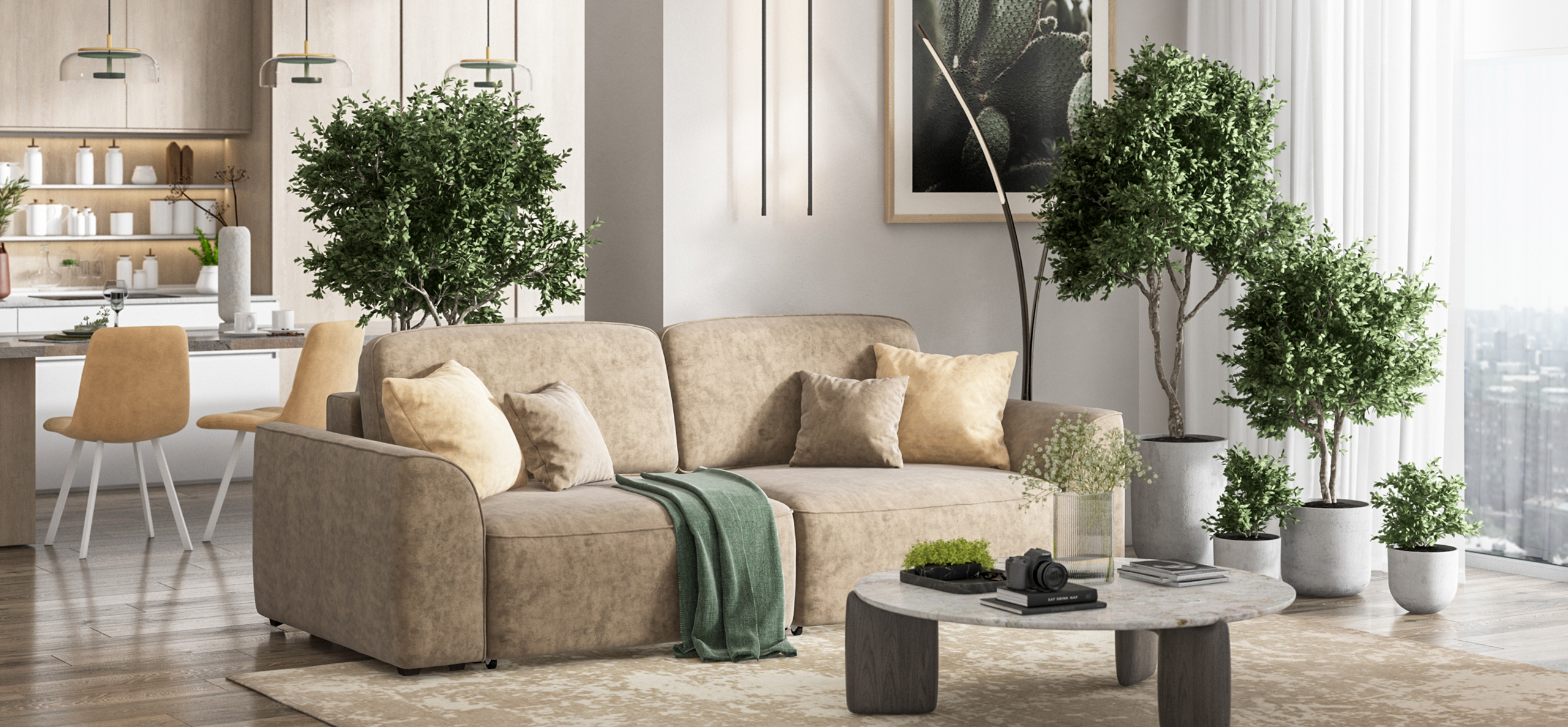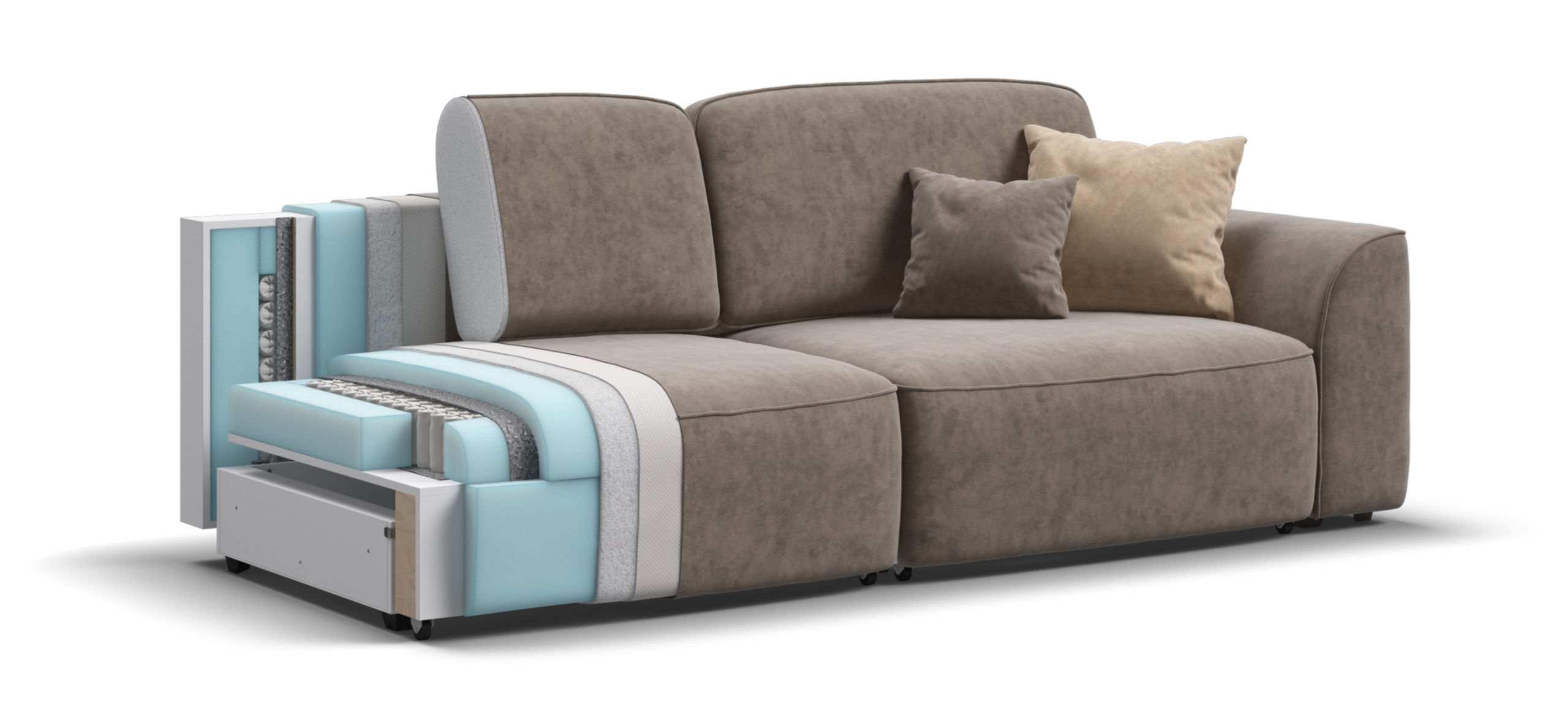 Комфортная посадка, скругленные линии, объемные подушки - диван, который наполнит ваш дом уютом и комфортом. Каждое посадочное место можно выдвинуть вперед и получить угловой диван, на котором с комфортом разместится небольшая компания. А в разложенном виде диван превращается в комфортное спальное место.