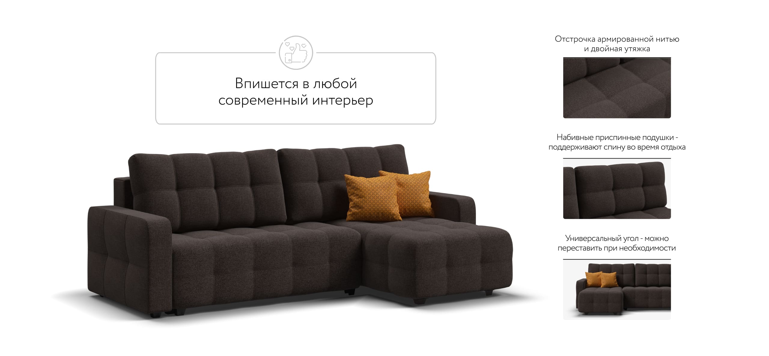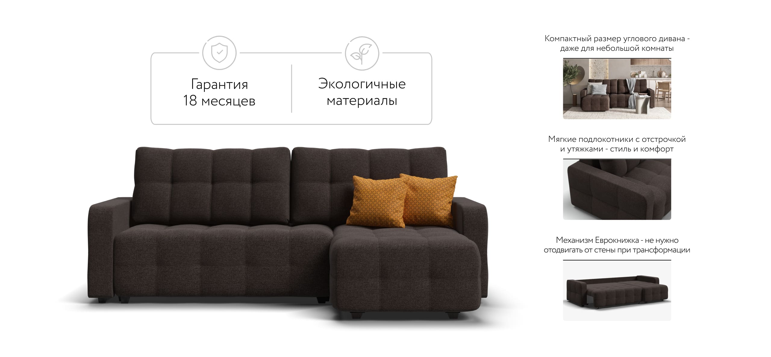 Угловой диван DANDY Euro SE Рогожка Malmo шоколад