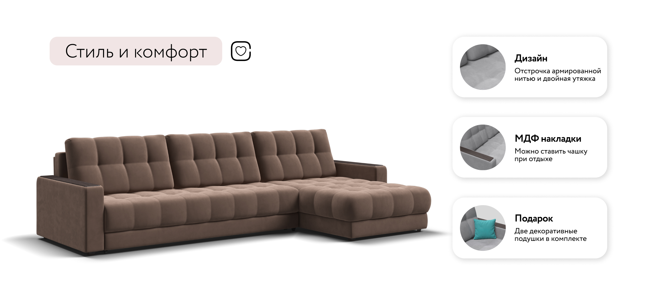 Продуманный до мелочей диван BOSS сочетает в себе надежный каркас, мягкие ткани, многофункциональность и быструю сборку за 1 минуту без инструментов - ощутите комфорт у себя дома!