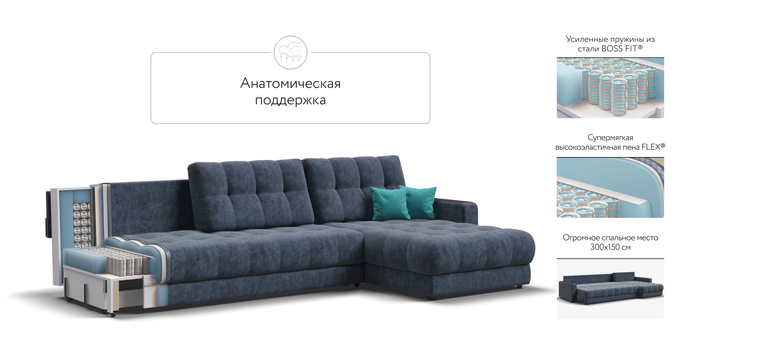 Продуманный до мелочей диван BOSS сочетает в себе надежный каркас, мягкие ткани, многофункциональность и быструю сборку за 1 минуту без инструментов - ощутите комфорт у себя дома!