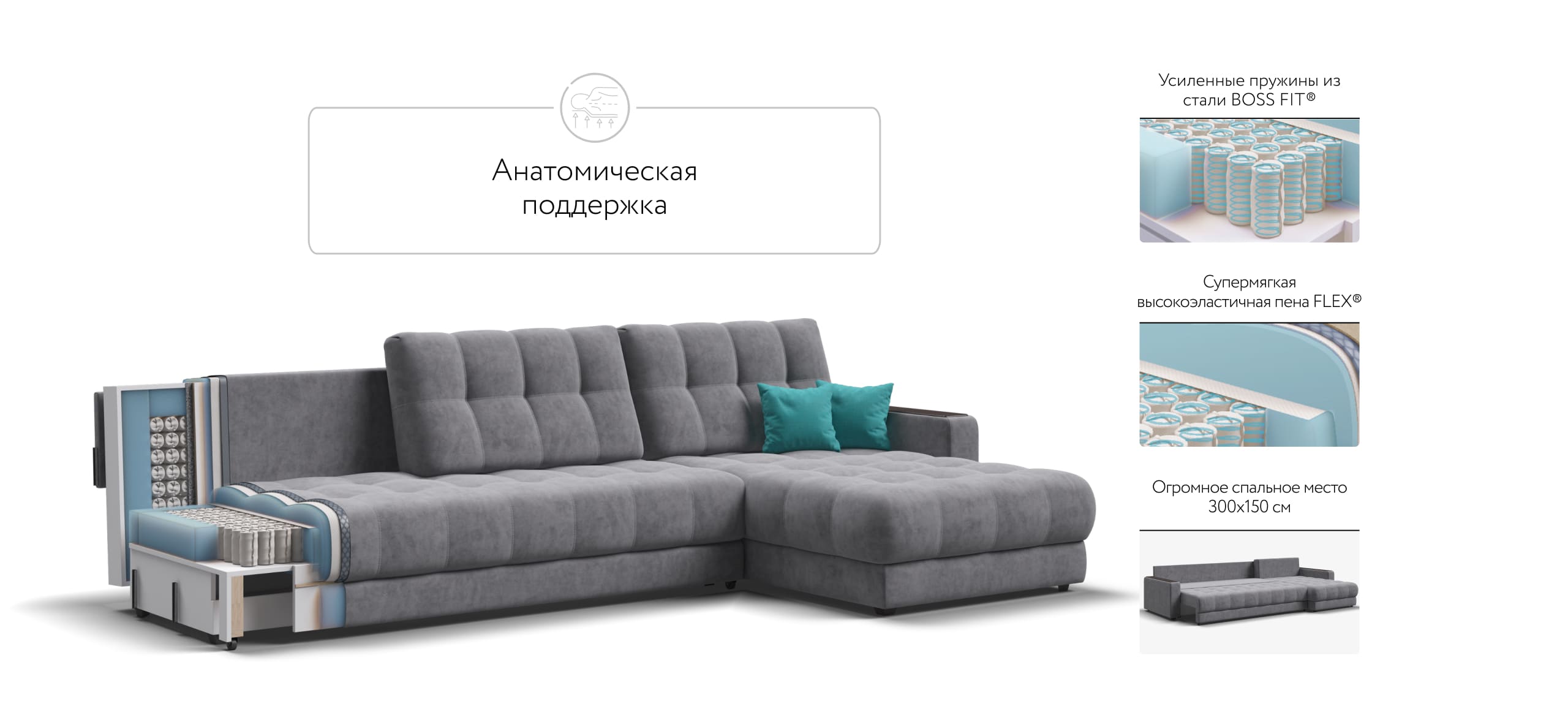 Продуманный до мелочей диван BOSS сочетает в себе надежный каркас, мягкие ткани, многофункциональность и быструю сборку за 1 минуту без инструментов - ощутите комфорт у себя дома!