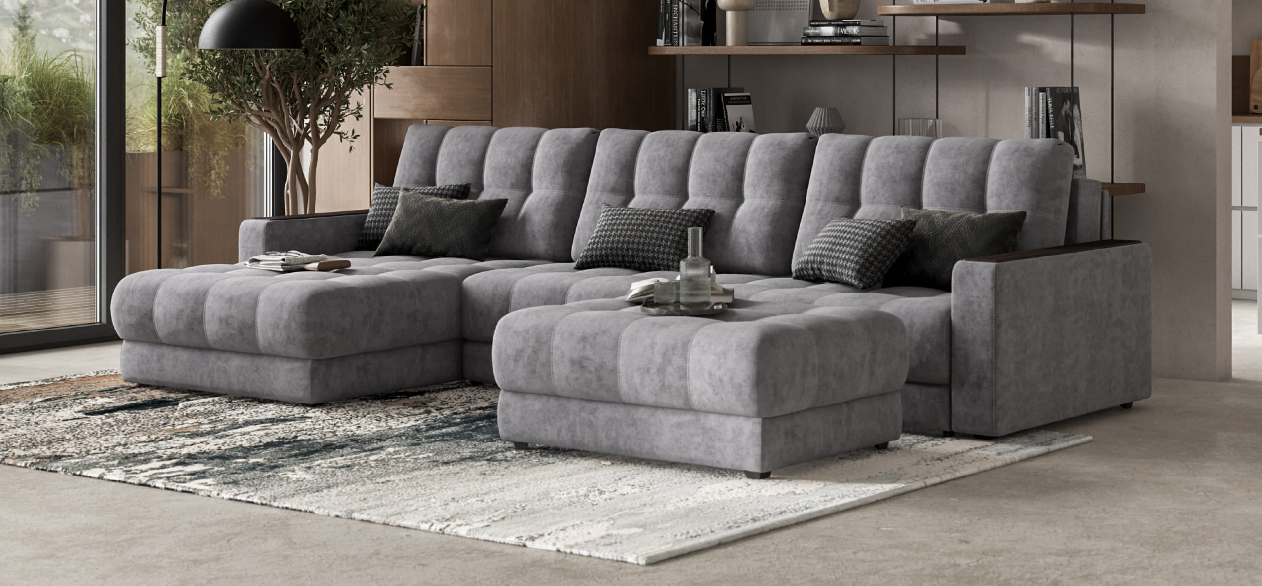 Угловой диван BOSS MAX - большой, стильный и комфортный диван, предназначенный для просторной комнаты.