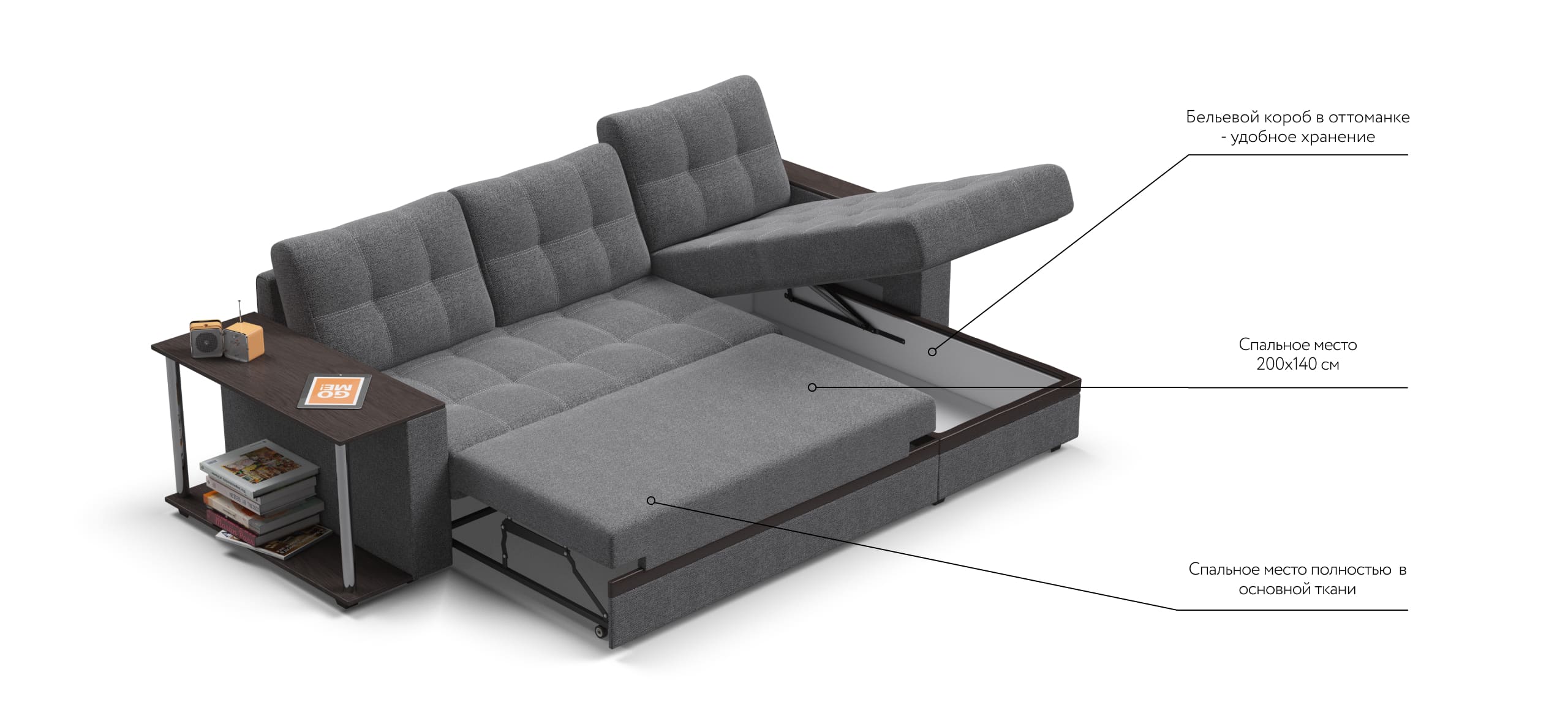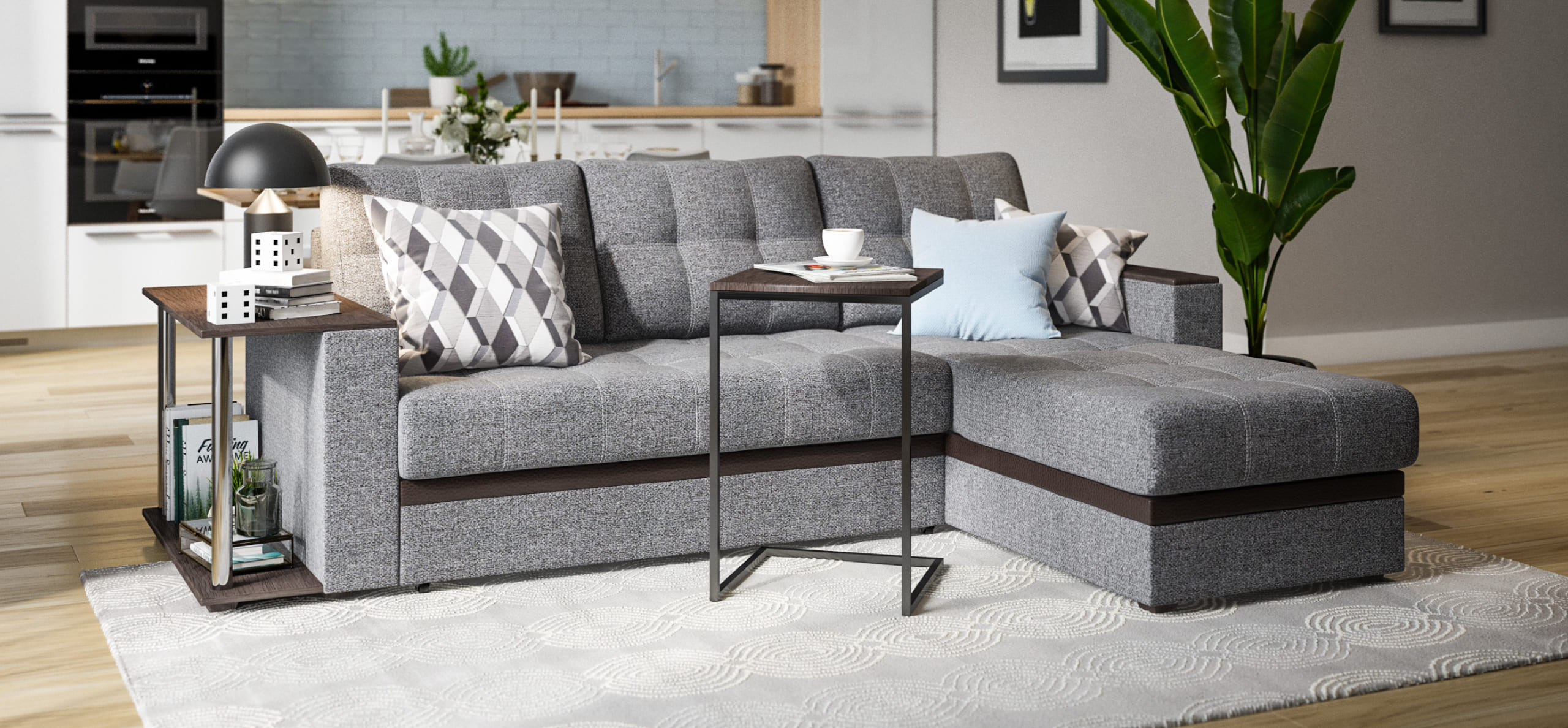 Угловой диван Атланта НПБ рогожка Malmo серый