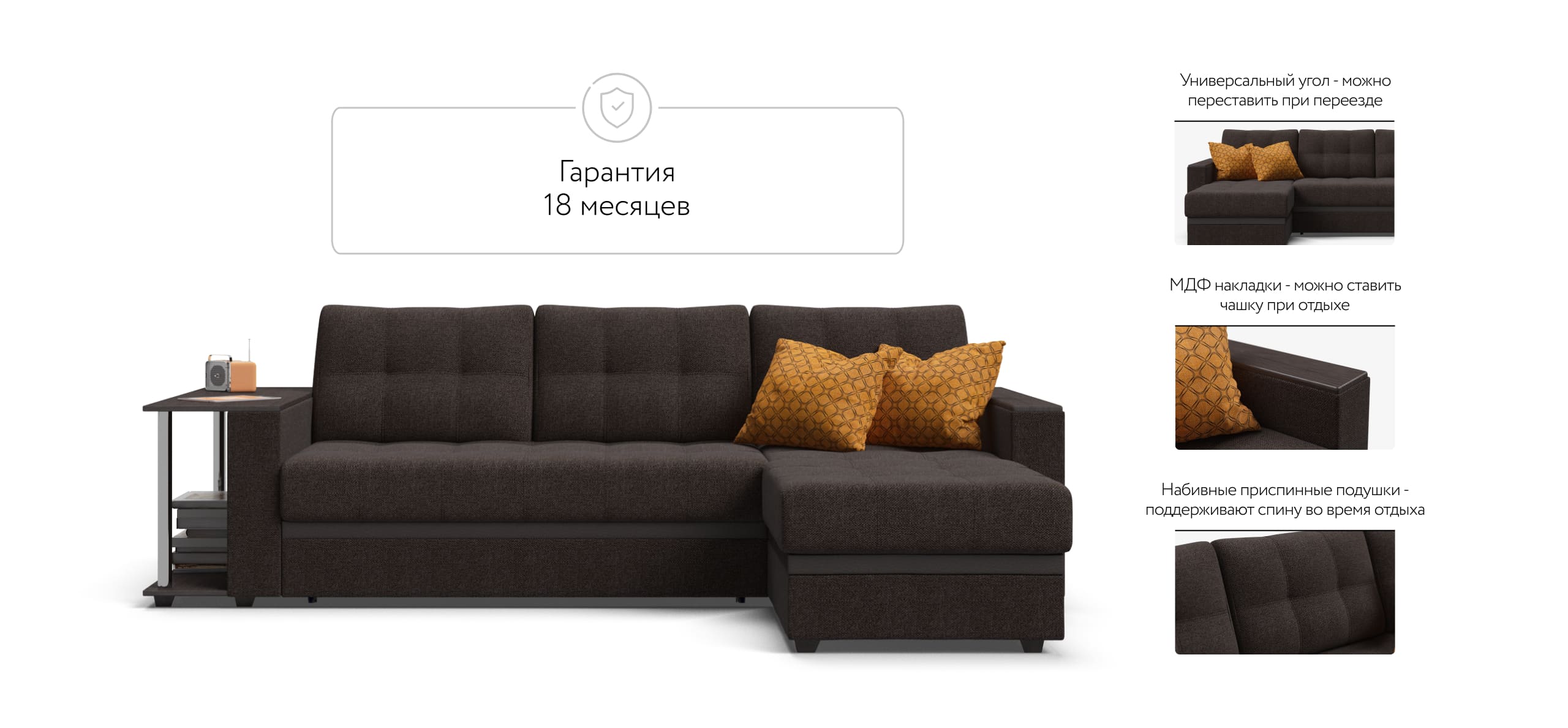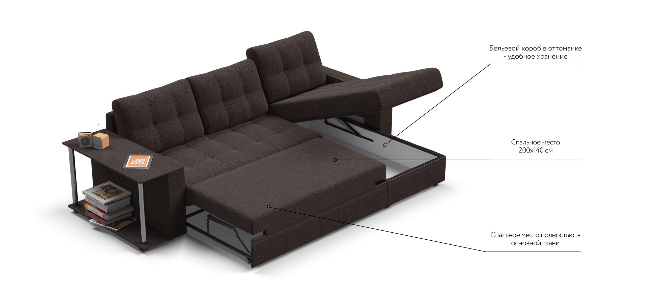 Угловой диван Атланта НПБ рогожка Malmo шоколад
