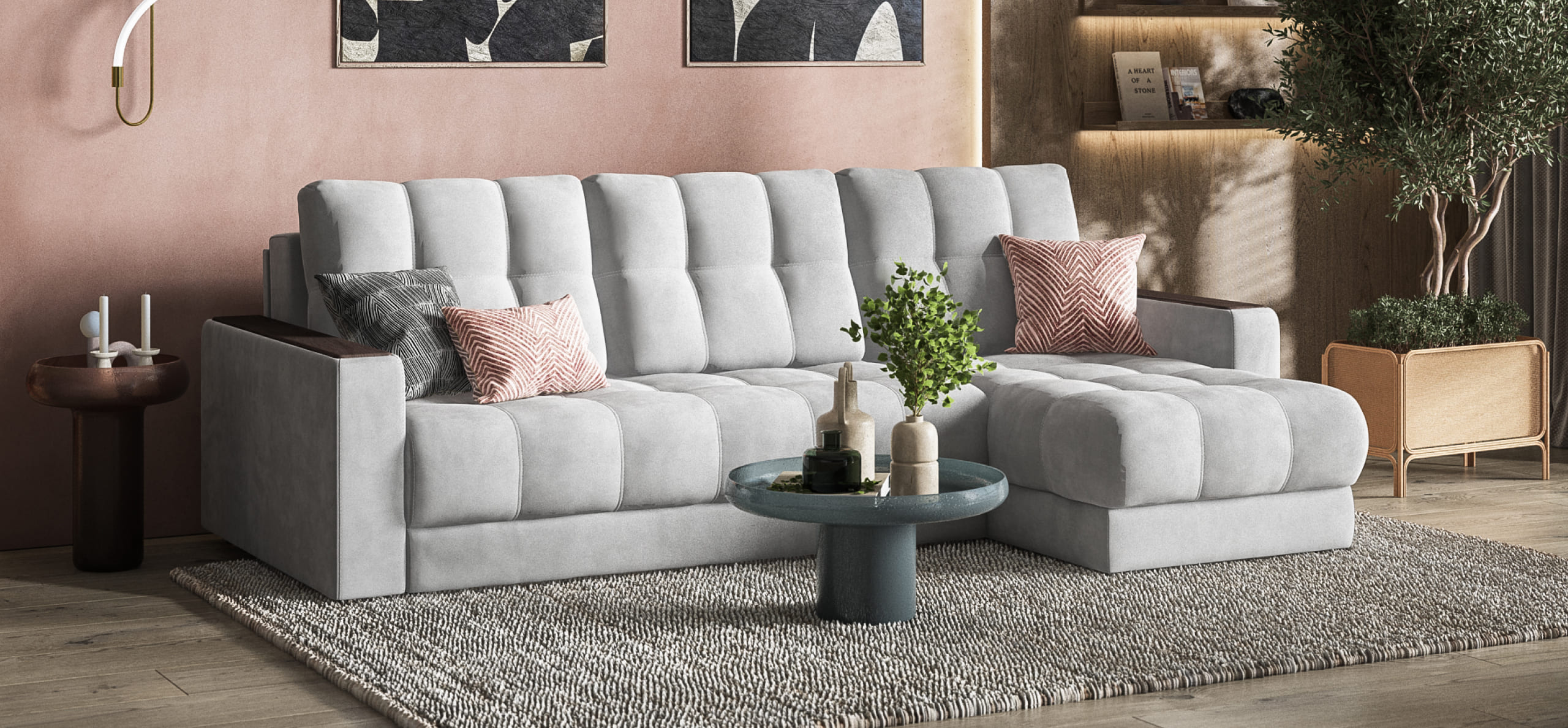 Угловой диван BOSS Classic XL - диван с подъемной оттоманкой и механизмом Еврокнижка.