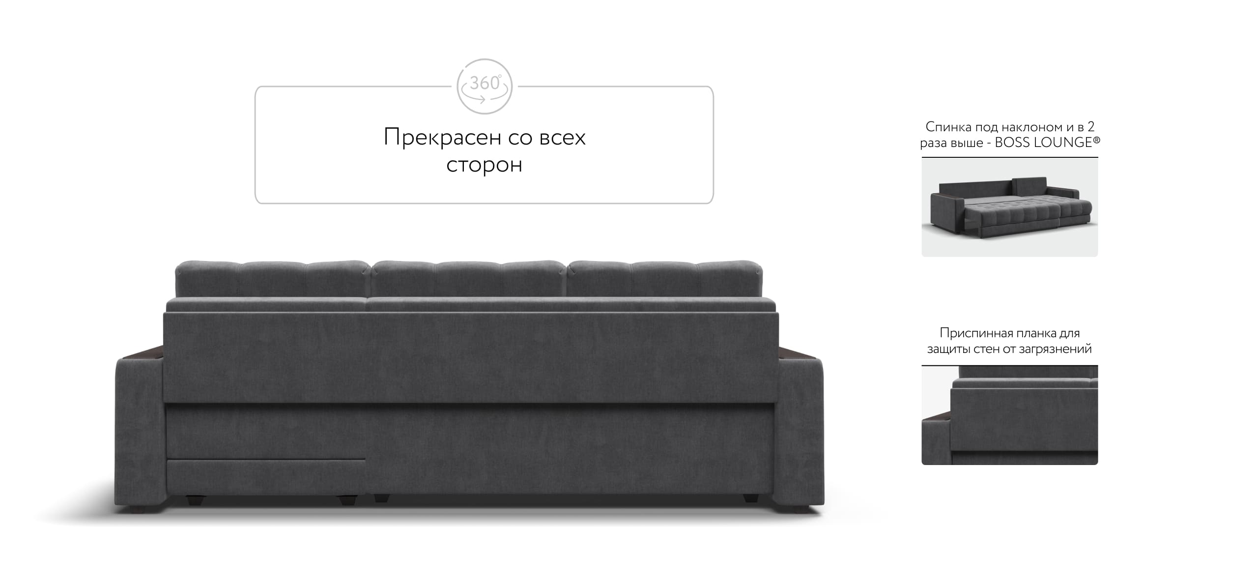 Продуманный до мелочей диван BOSS сочетает в себе мягкие ткани, надежный каркас, качественное наполнение матраса и быструю сборку за 1 минуту без инструментов - ощутите комфорт у себя дома!