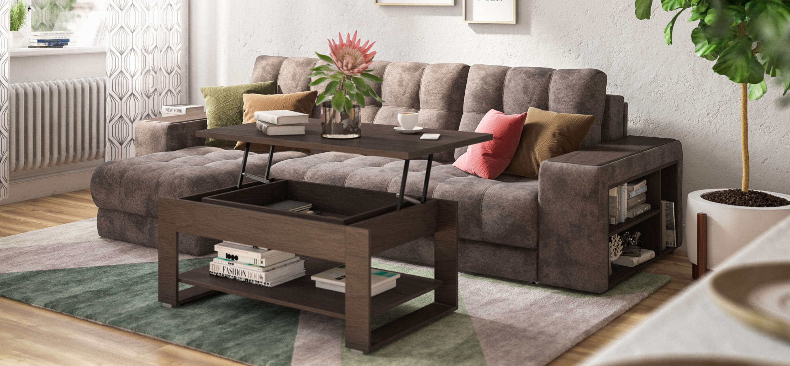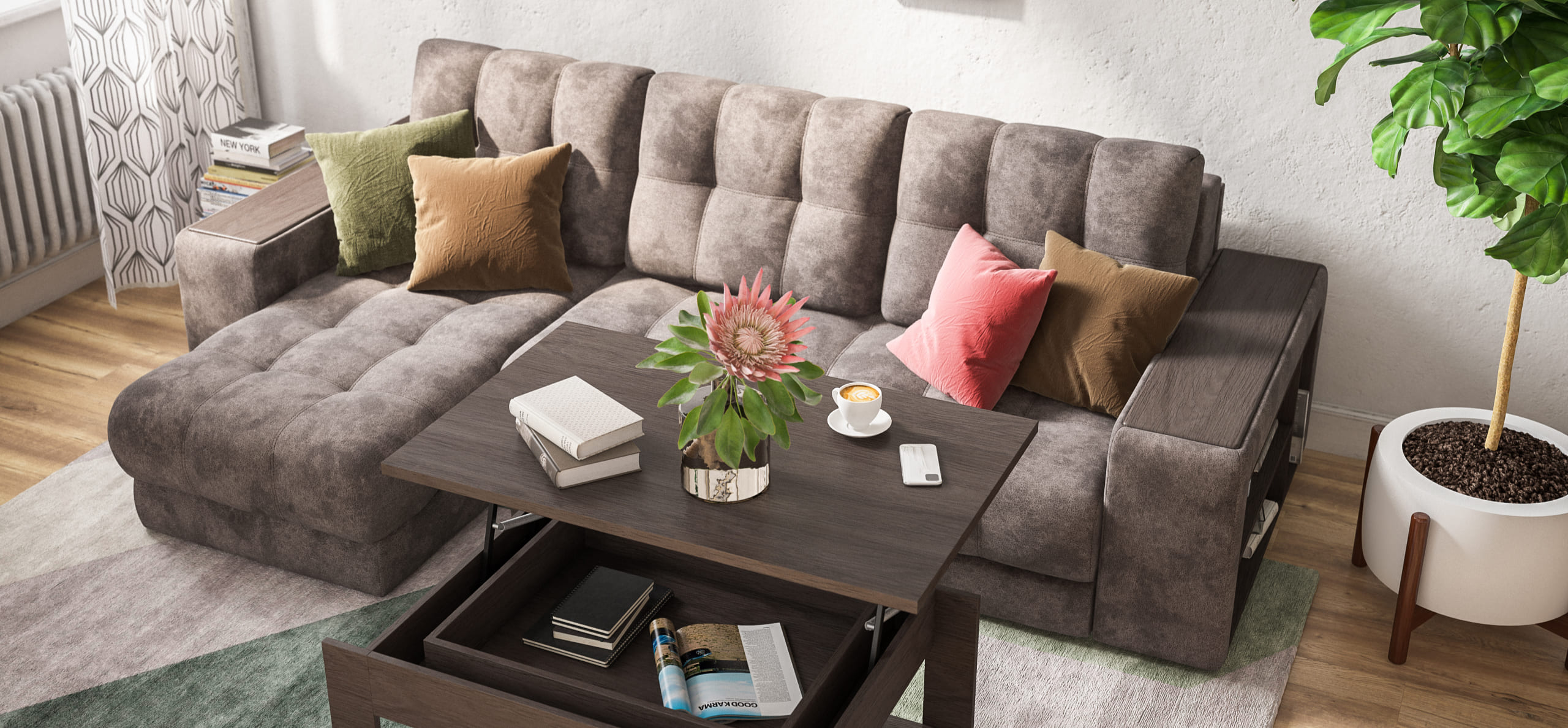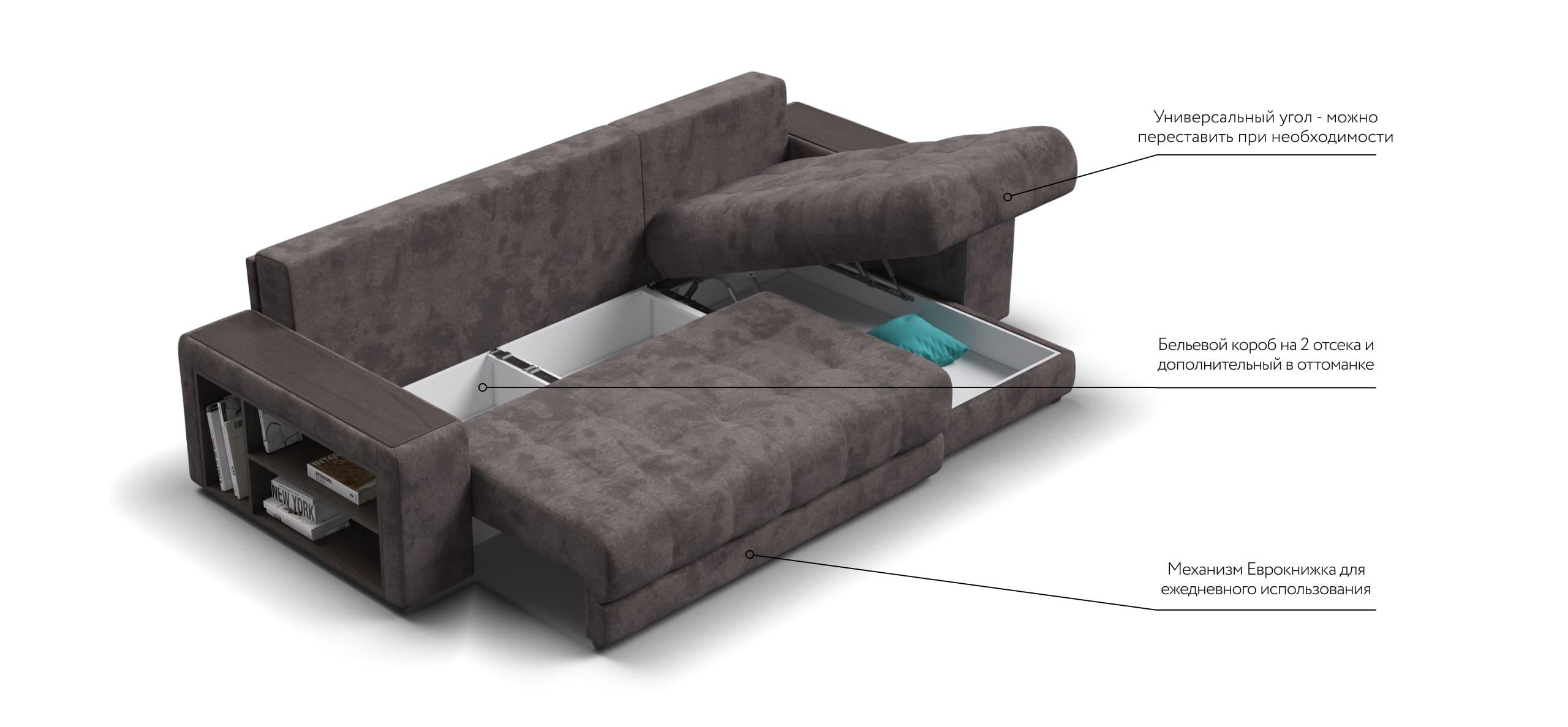 Угловой диван BOSS XL - диван с подъемной оттоманкой и механизмом Еврокнижка.