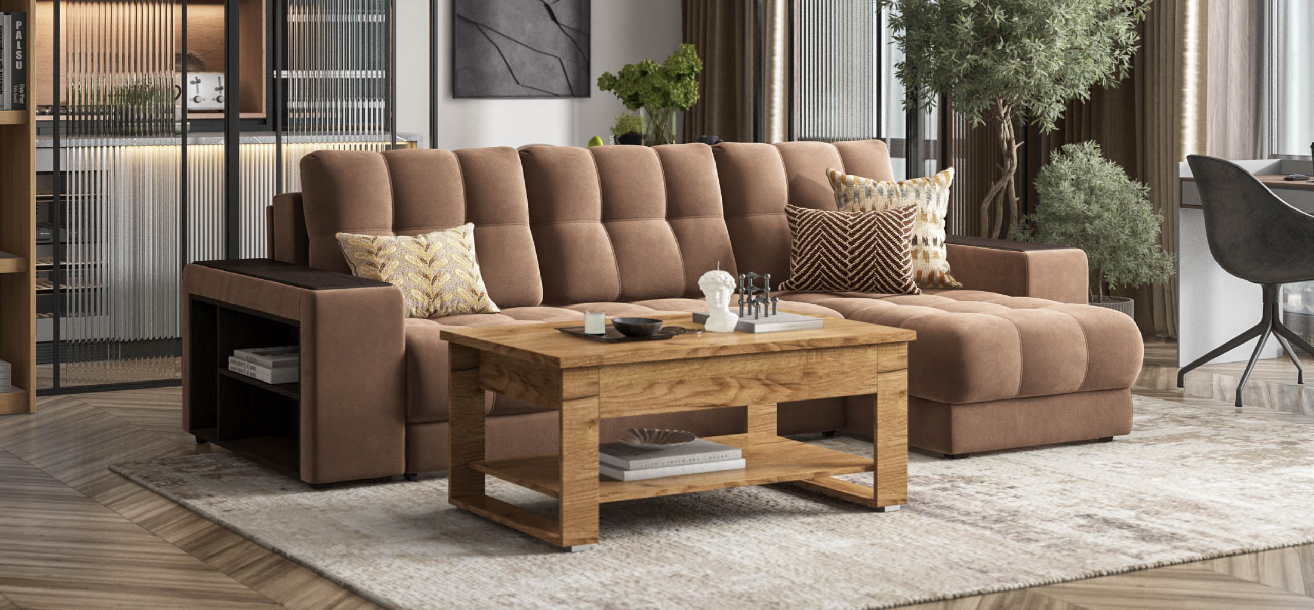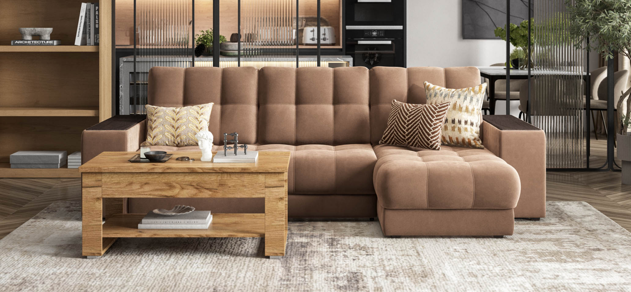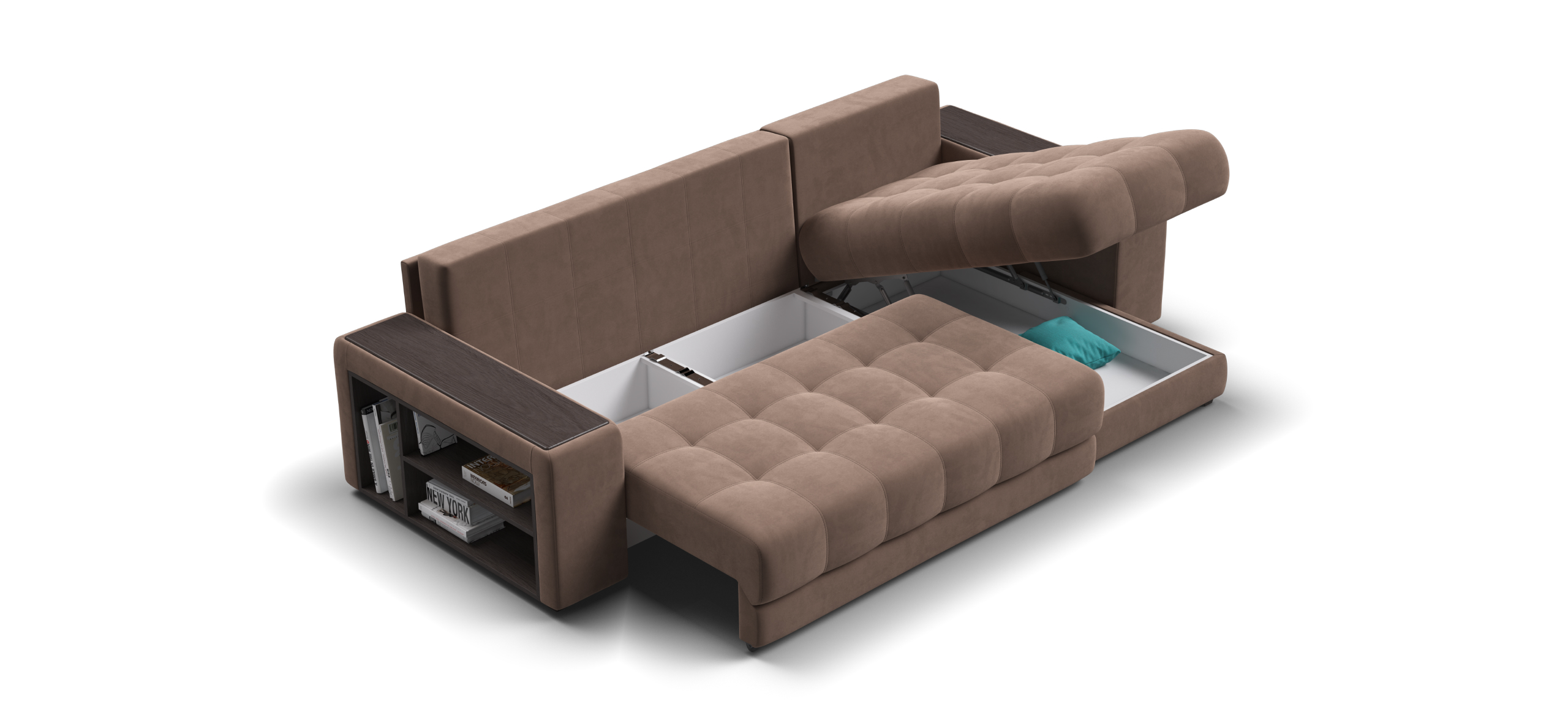 Угловой диван BOSS XL - диван с подъемной оттоманкой и механизмом Еврокнижка.