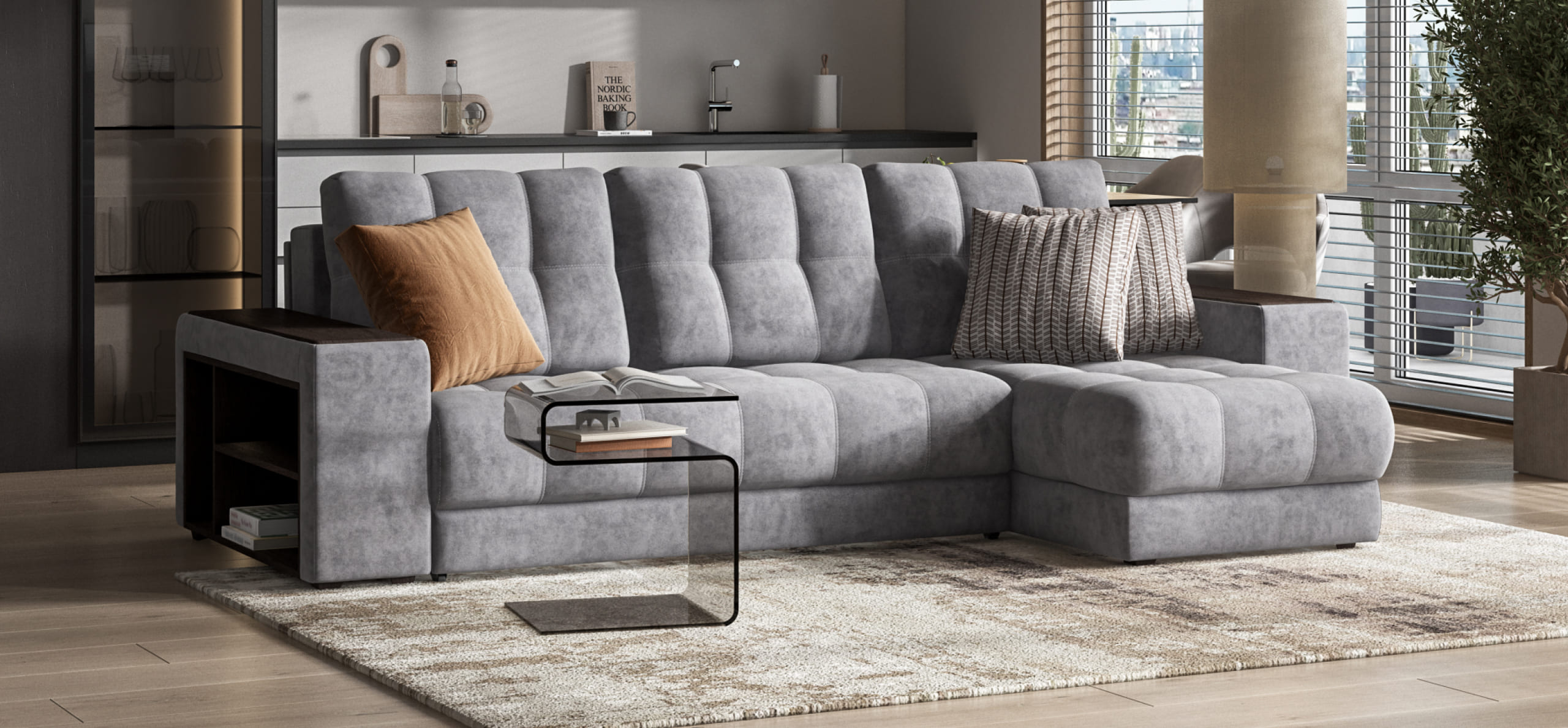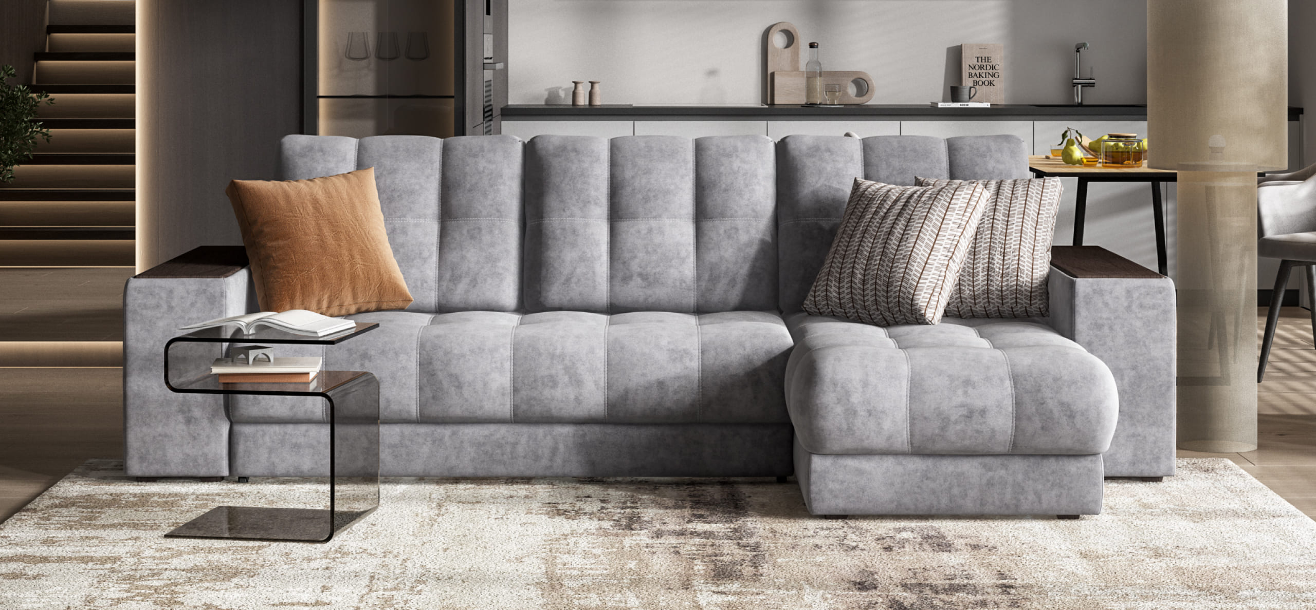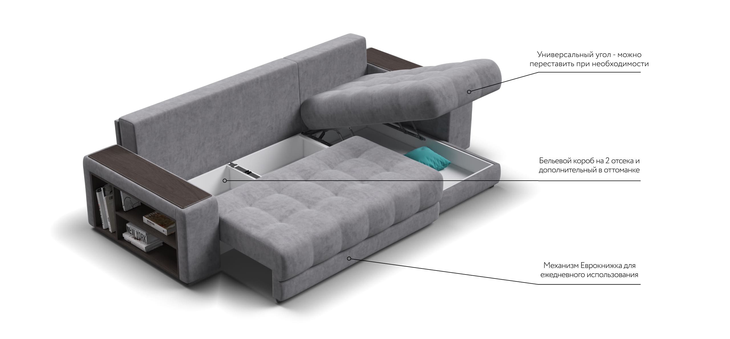 Простой и надежный механизм еврокнижка позволяет ставить диван вплотную к стене.