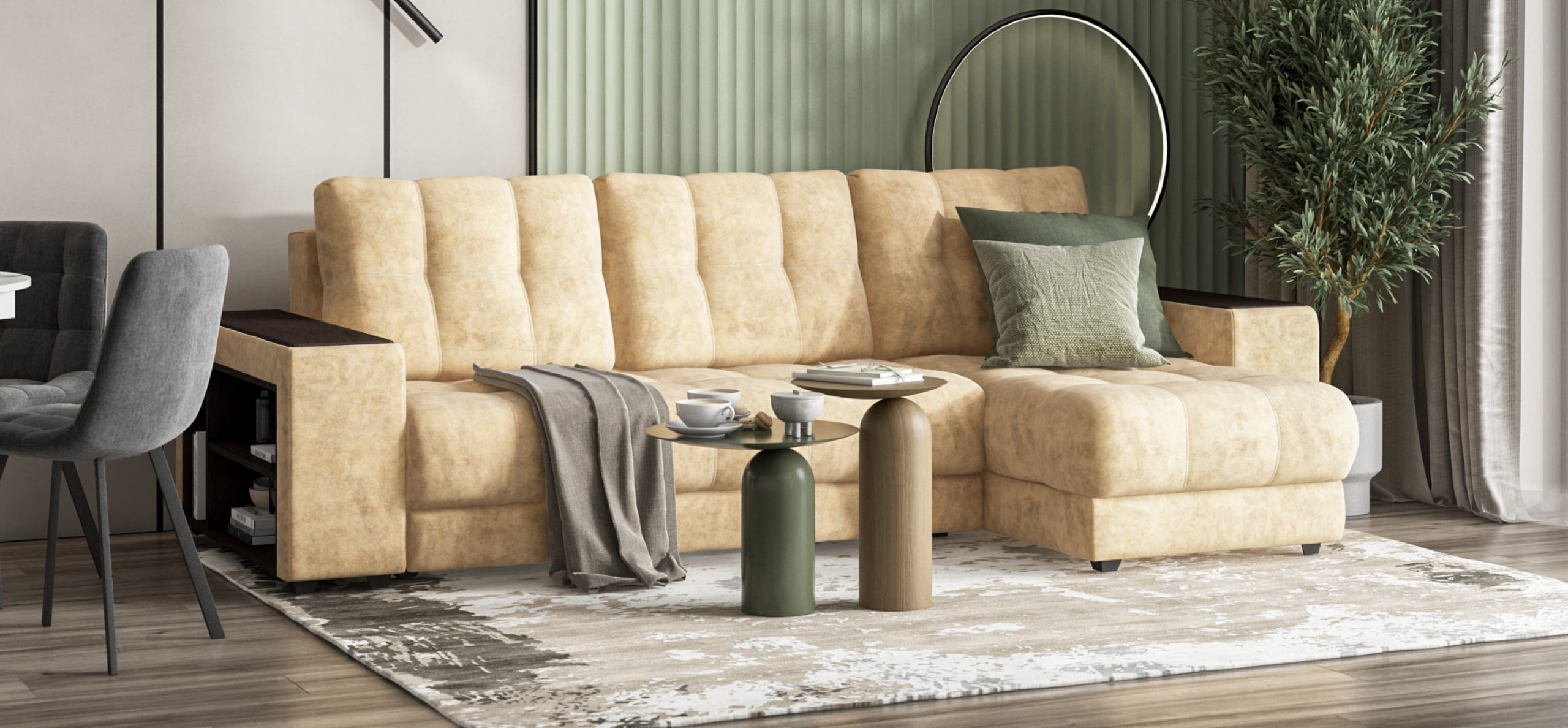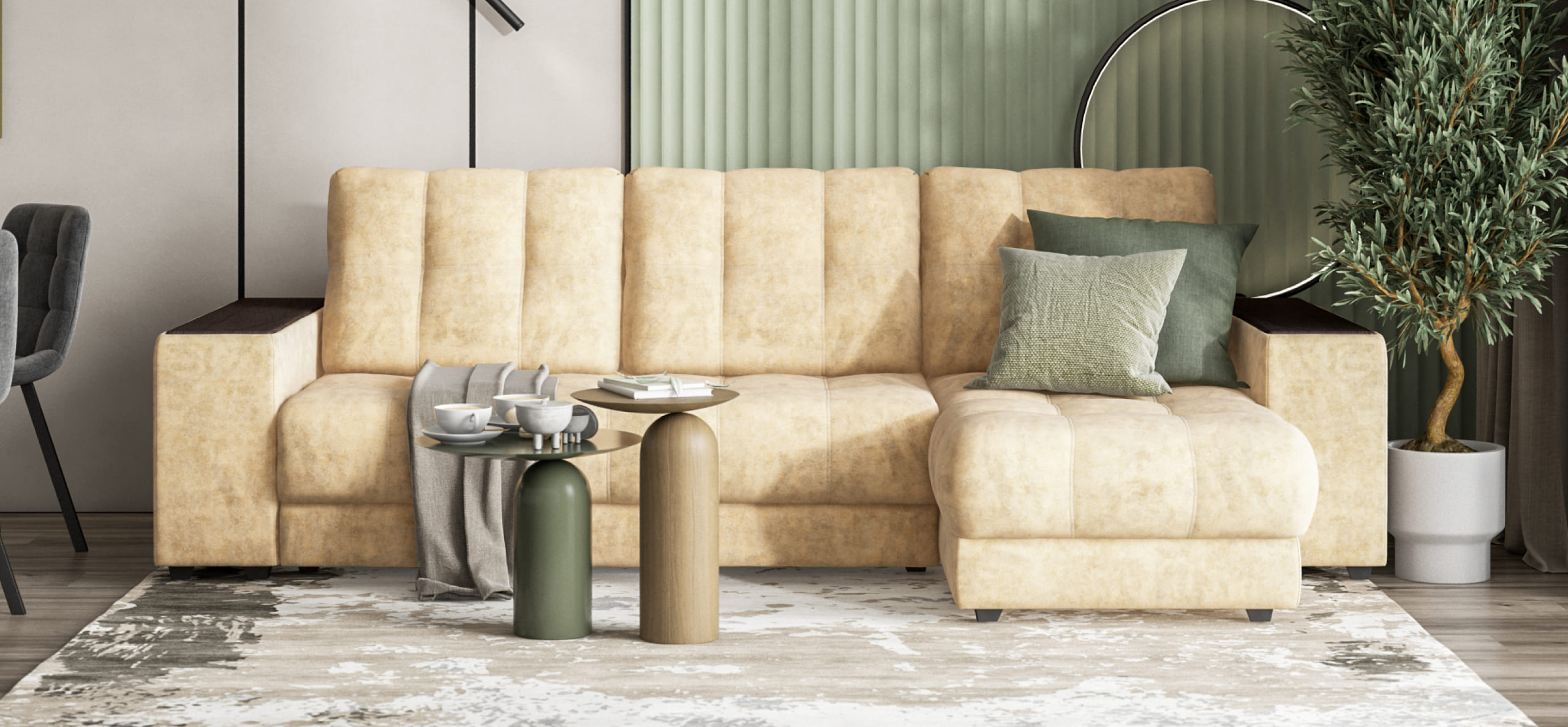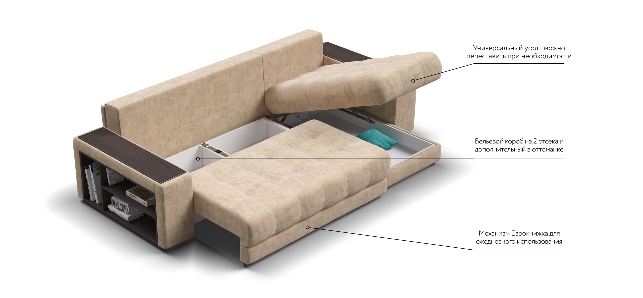 Угловой диван BOSS XL - диван с подъемной оттоманкой и механизмом Еврокнижка.