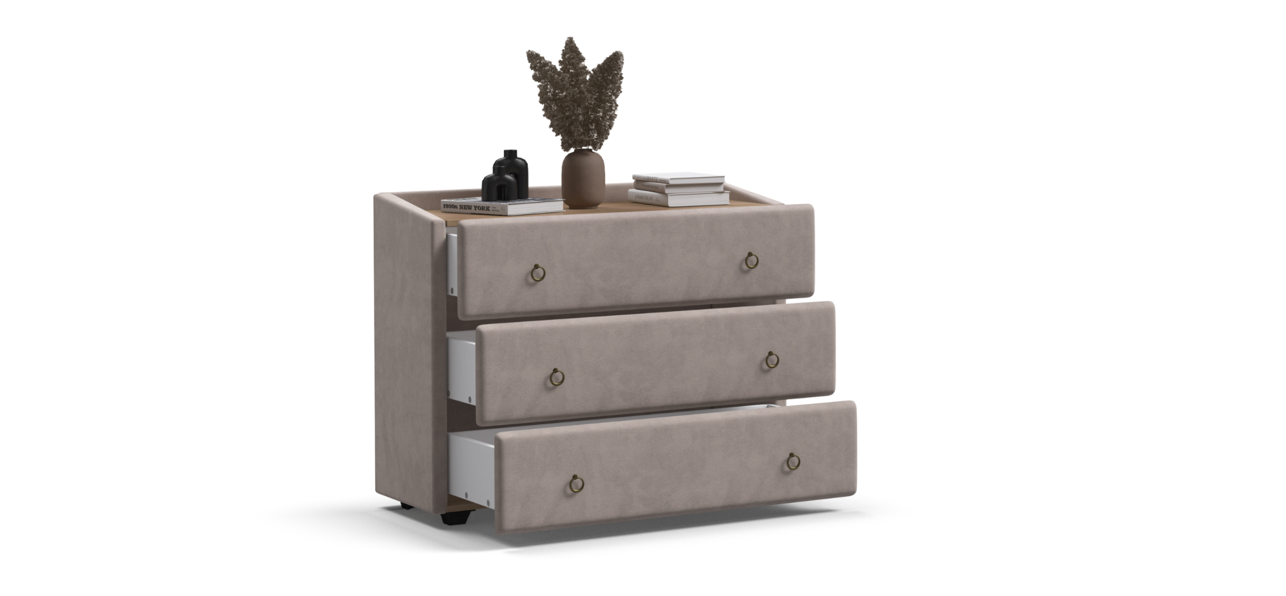 Комод BOSS CLASSIC разработан специально для вашего максимального комфорта. Три вместительных ящика из качественных материалов с усиленными направляющими скрытого монтажа для хранения вещей. Продуманный дизайн комода с высоким бортиком защитит ваши ценные вещи от падения, а дизайнерская ручка подчеркнет изысканный вкус владельца. Новые цвета ЛДСП в теплом и холодном оттенке подобраны специально под наши ткани.
