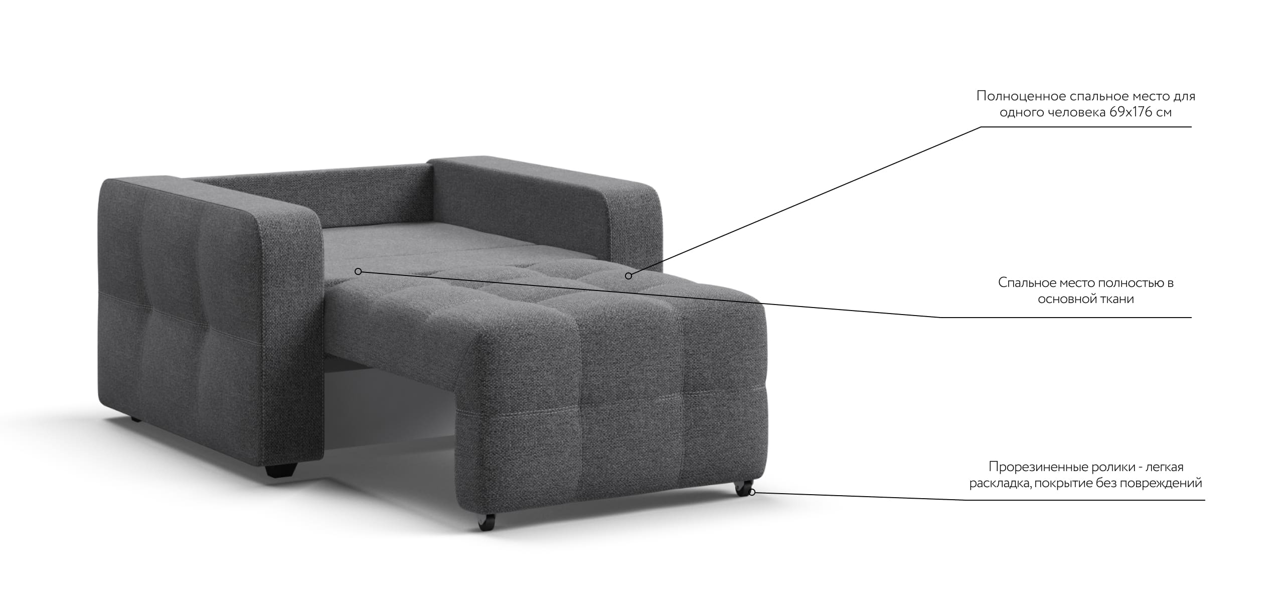 Кресло-кровать Dandy рогожка Malmo серый