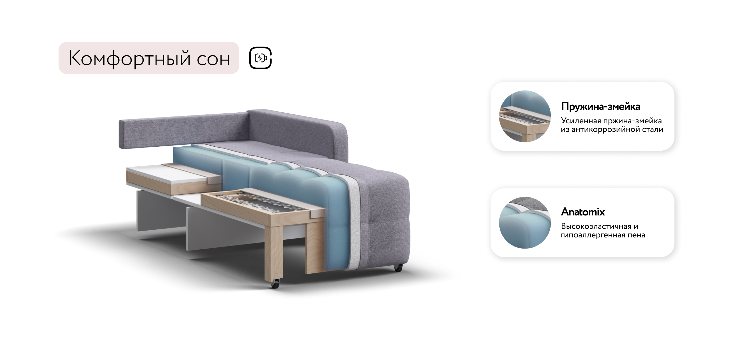 Ваш комфорт обеспечит матрас выполненный из высокоэластичного ППУ, в сочетании со стальной пружинной змейкой в основании