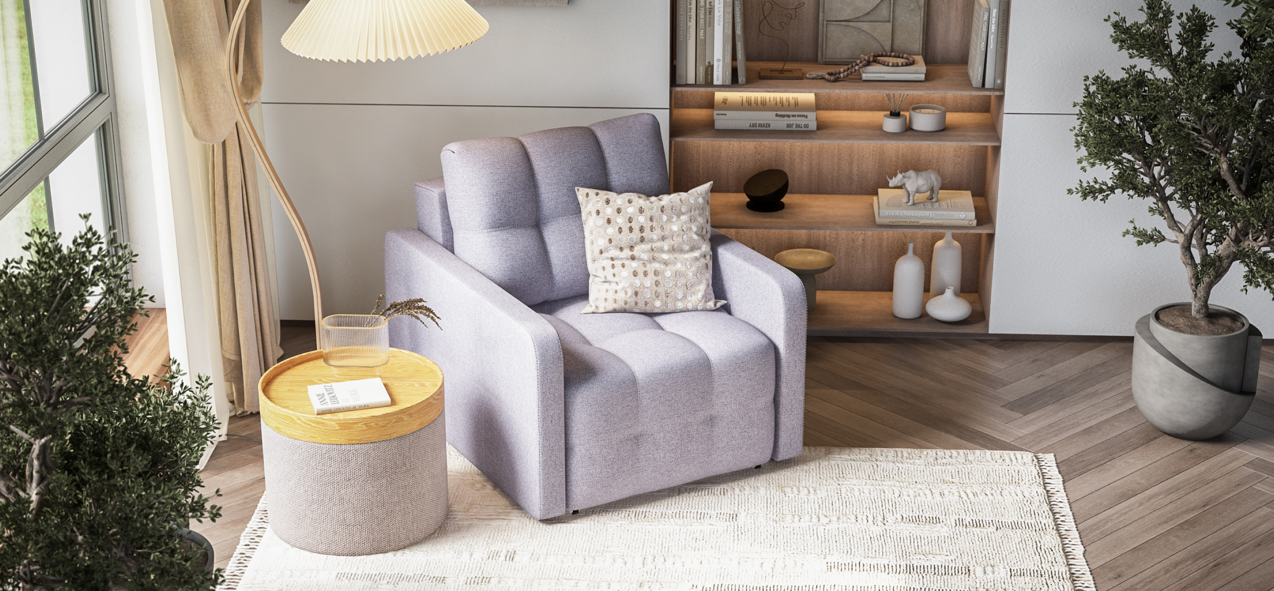 Благодаря современному механизму трансформации EASY-ROLL, кресло легко превращается в удобное спальное место, что делает его отличным вариантом для гостей или для уютных вечеров с книгой. С этим креслом-кроватью вы сможете создать атмосферу уюта и стиля в вашем доме, не жертвуя при этом свободным пространством.