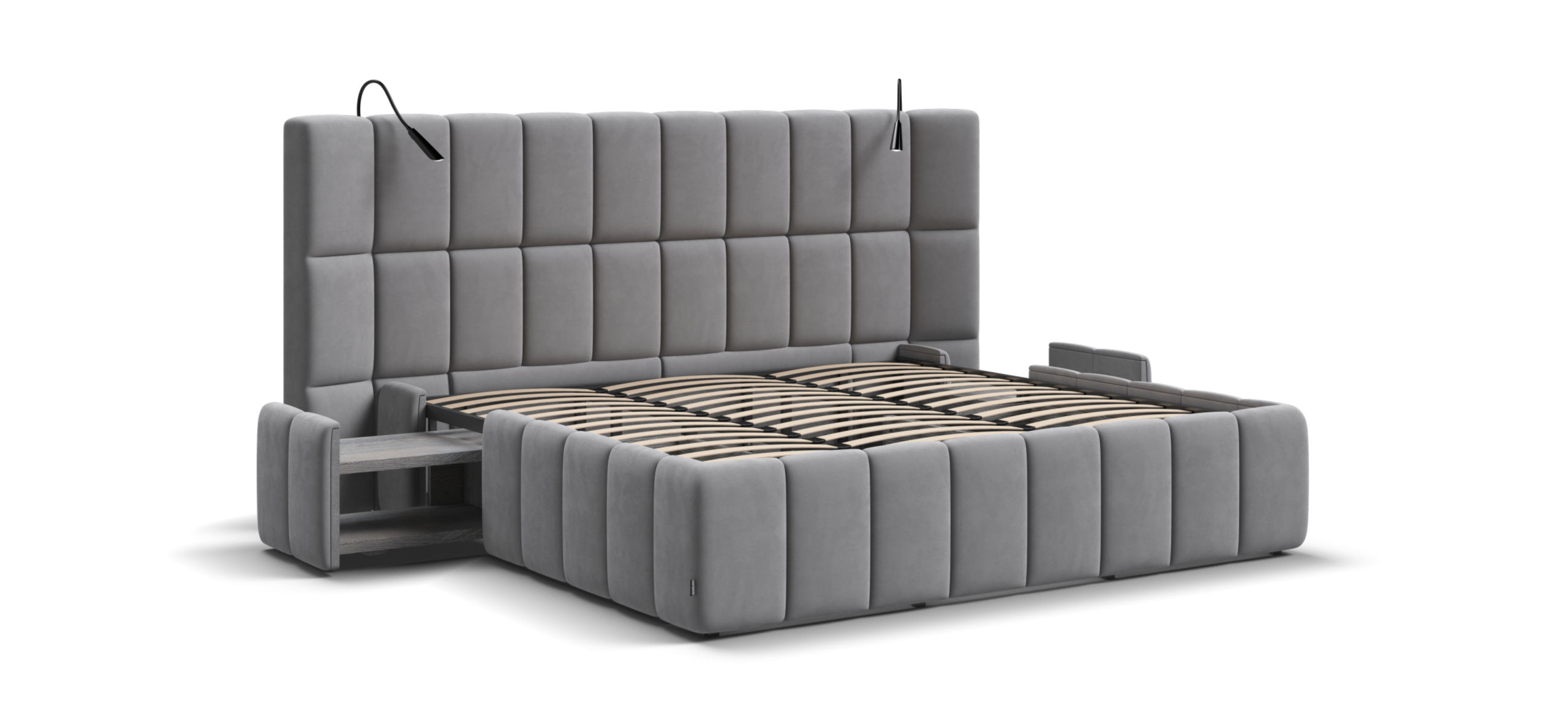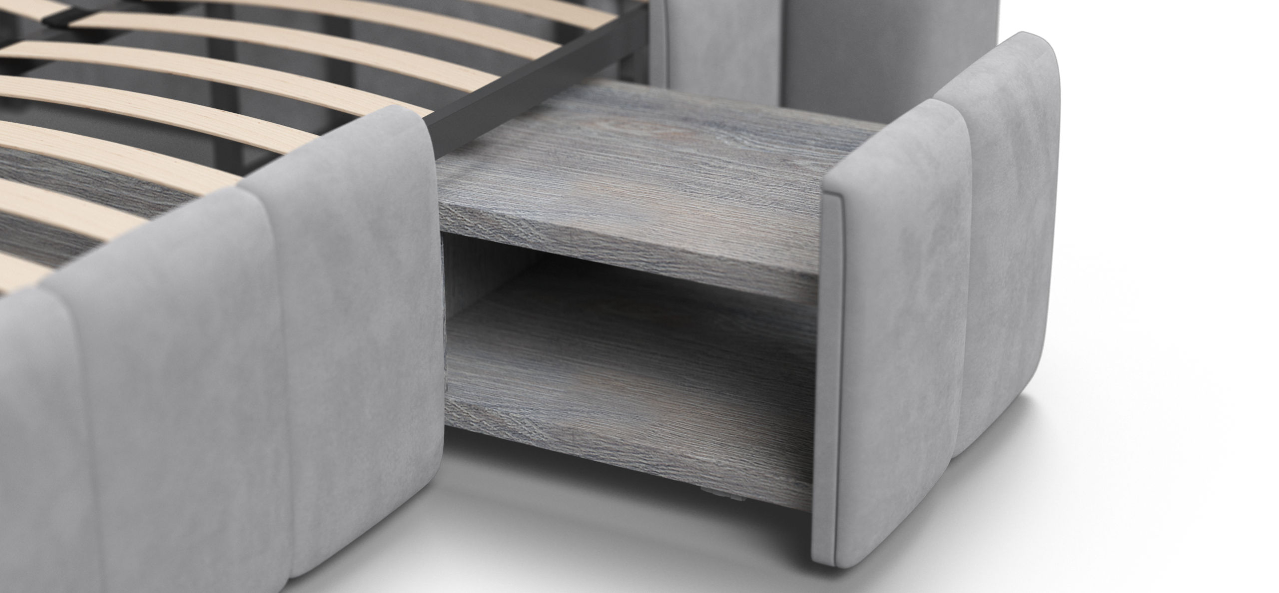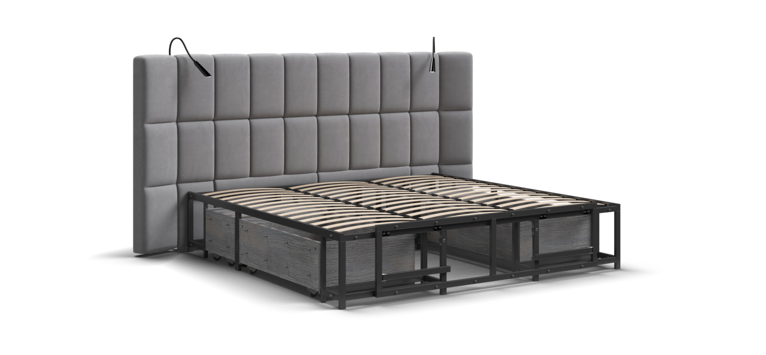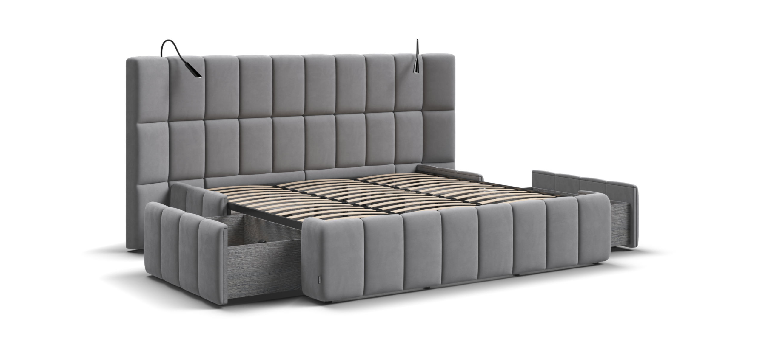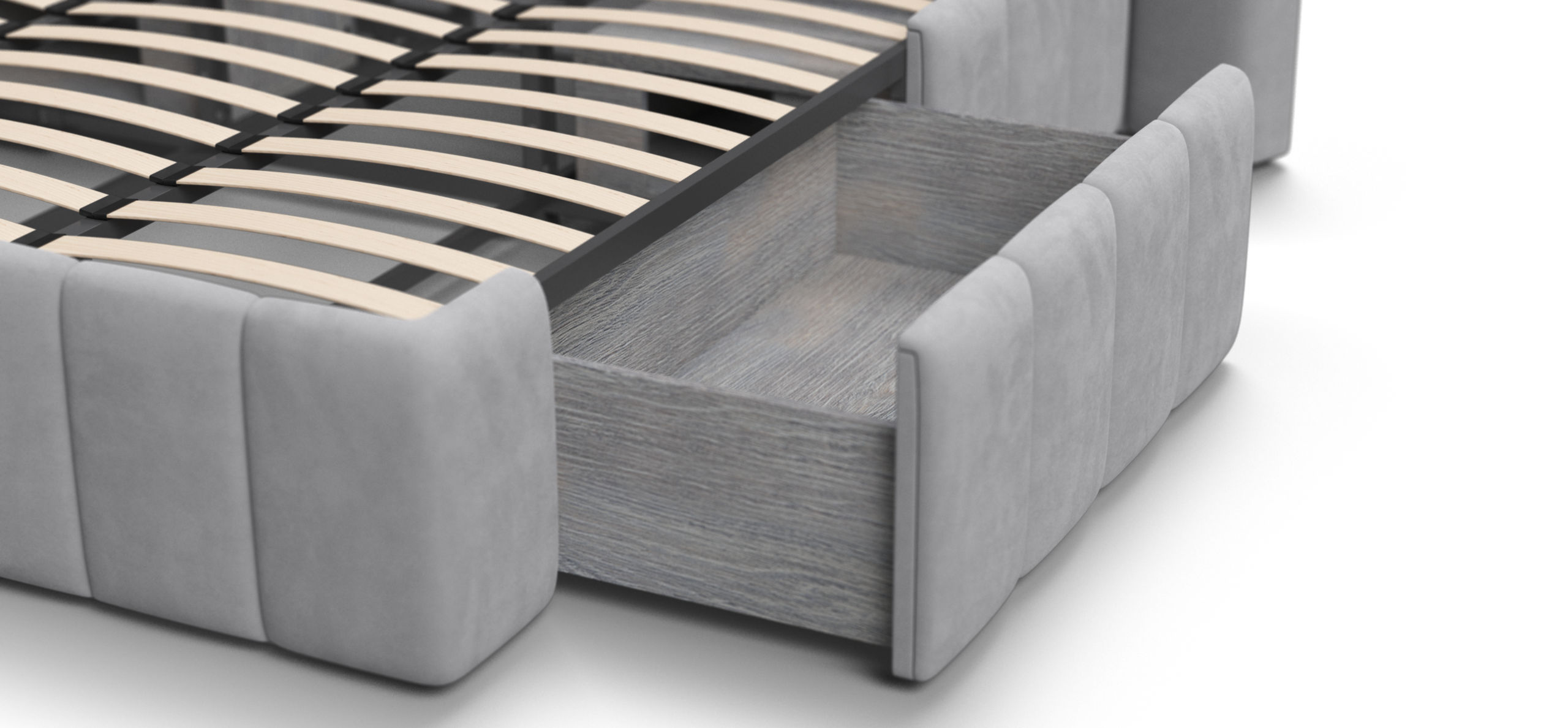 Каждая деталь очень качественно изготовлена. При сборке обратили внимание что в целом кровать очень продуманна, например при выдвижении тумбы, ящиков и банкетки не образуется пустое пространство куда например могут залезть домашние питомцы, все эти зоны продуманы перегородками.
