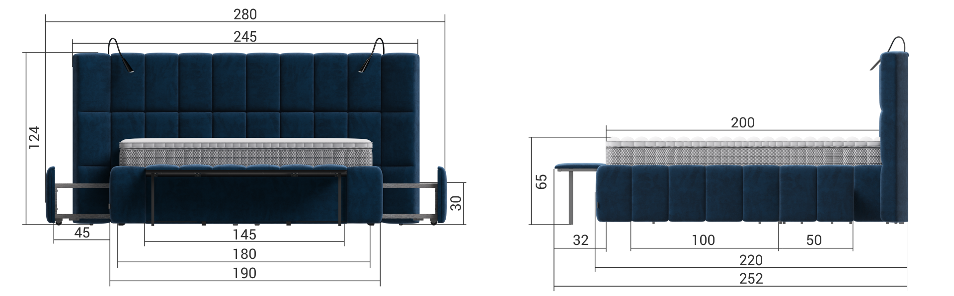 Сделанно в России , Декларация соответствия , Гарантия 1 000 дней , Беспроцентная рассрочка , Улучшает экологию , Подарки при покупке , Современный дизайн , Анатомическое основание , Металлический каркас , Удобные ящики для белья , Встроенная банкетка , Выдвижные тумбы