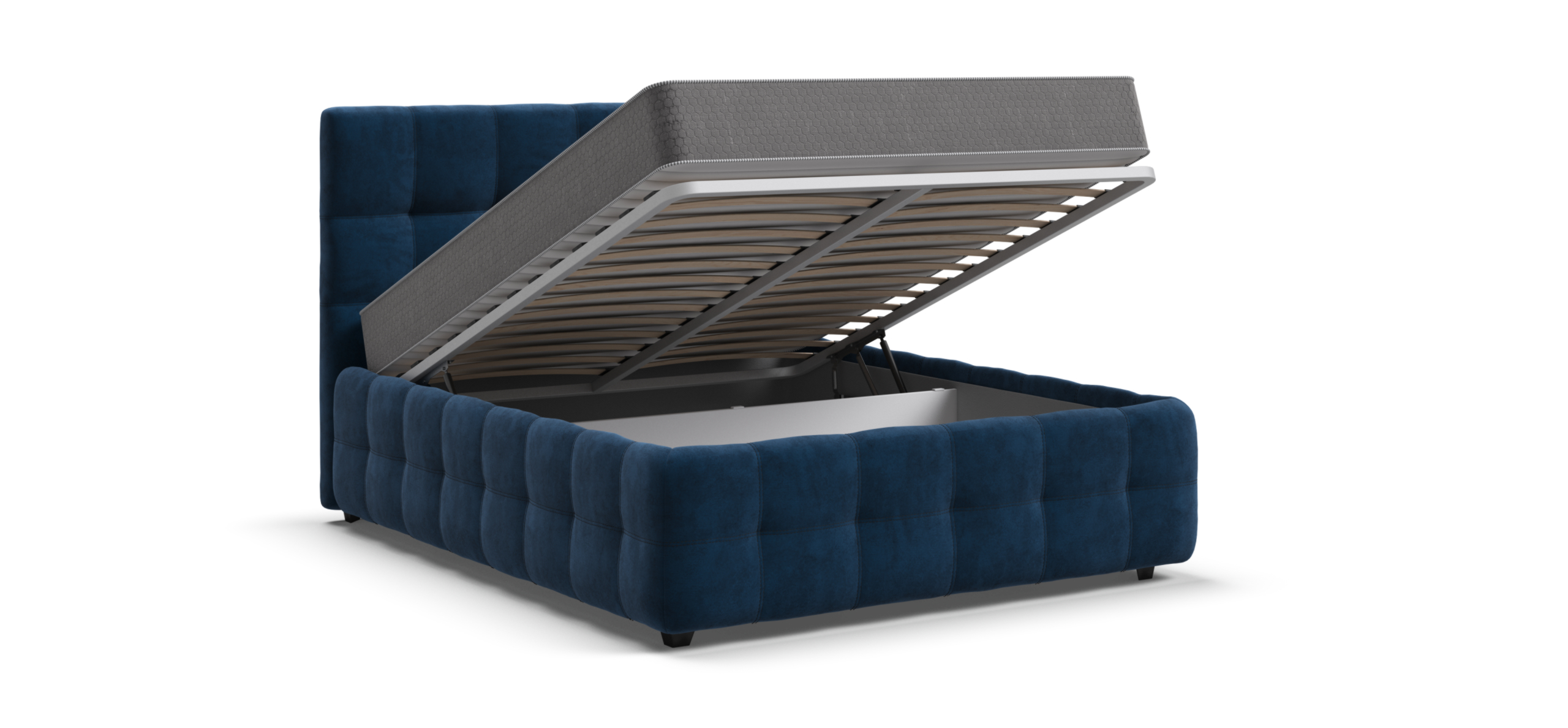 Особое внимание заслуживают газовые лифты SpaceLift, изготовленные из авиационного алюминия. Они обеспечивают лёгкое и плавное поднятие матраса, что делает доступ к отсеку для хранения быстрым и удобным. Дизайн 360 предполагает, что задняя часть спинки кровати также выполнена из основной ткани, что позволяет размещать кровать не только у стены, но и в центре комнаты, сохраняя при этом её эстетическую привлекательность.