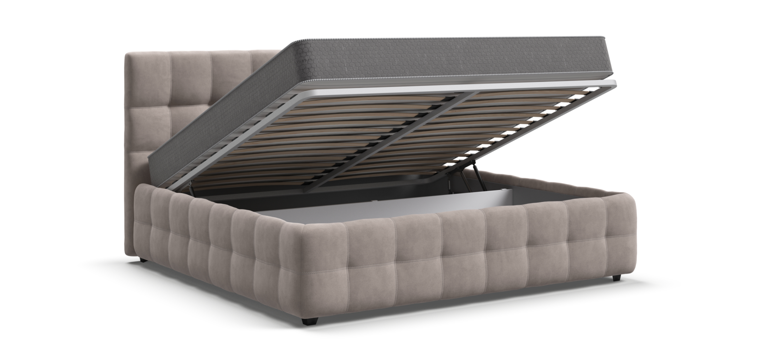 Особое внимание заслуживают газовые лифты SpaceLift, изготовленные из авиационного алюминия. Они обеспечивают лёгкое и плавное поднятие матраса, что делает доступ к отсеку для хранения быстрым и удобным. Дизайн 360 предполагает, что задняя часть спинки кровати также выполнена из основной ткани, что позволяет размещать кровать не только у стены, но и в центре комнаты, сохраняя при этом её эстетическую привлекательность.
