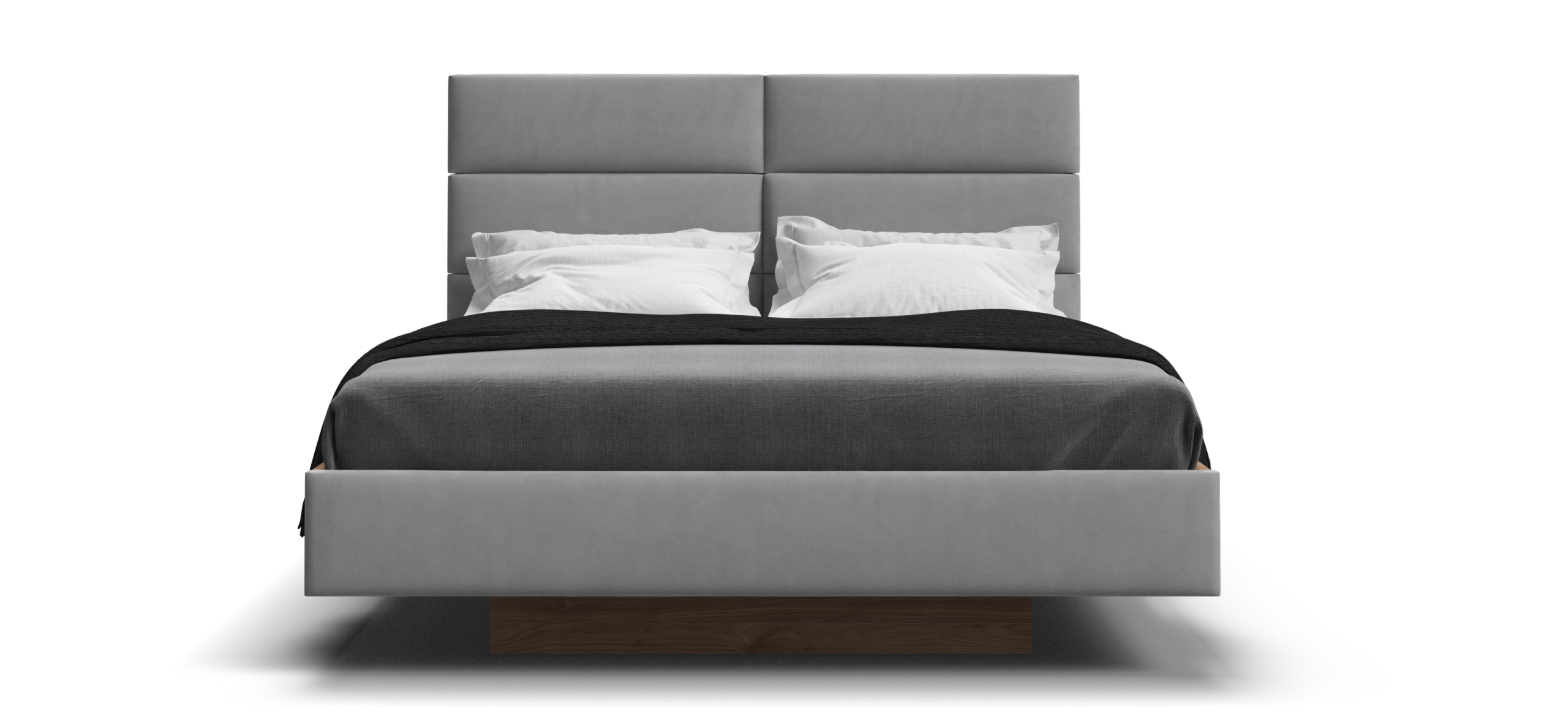 Царги кровати приподняты над полом, создавая эффект парения, что добавляет ей стильности и функциональности. Такой дизайн позволяет установить дополнительную интерьерную подсветку и защищает от случайных ударов об ножки. Парящий эффект не только визуально расширяет пространство, но и делает комнату более уютной и современной.