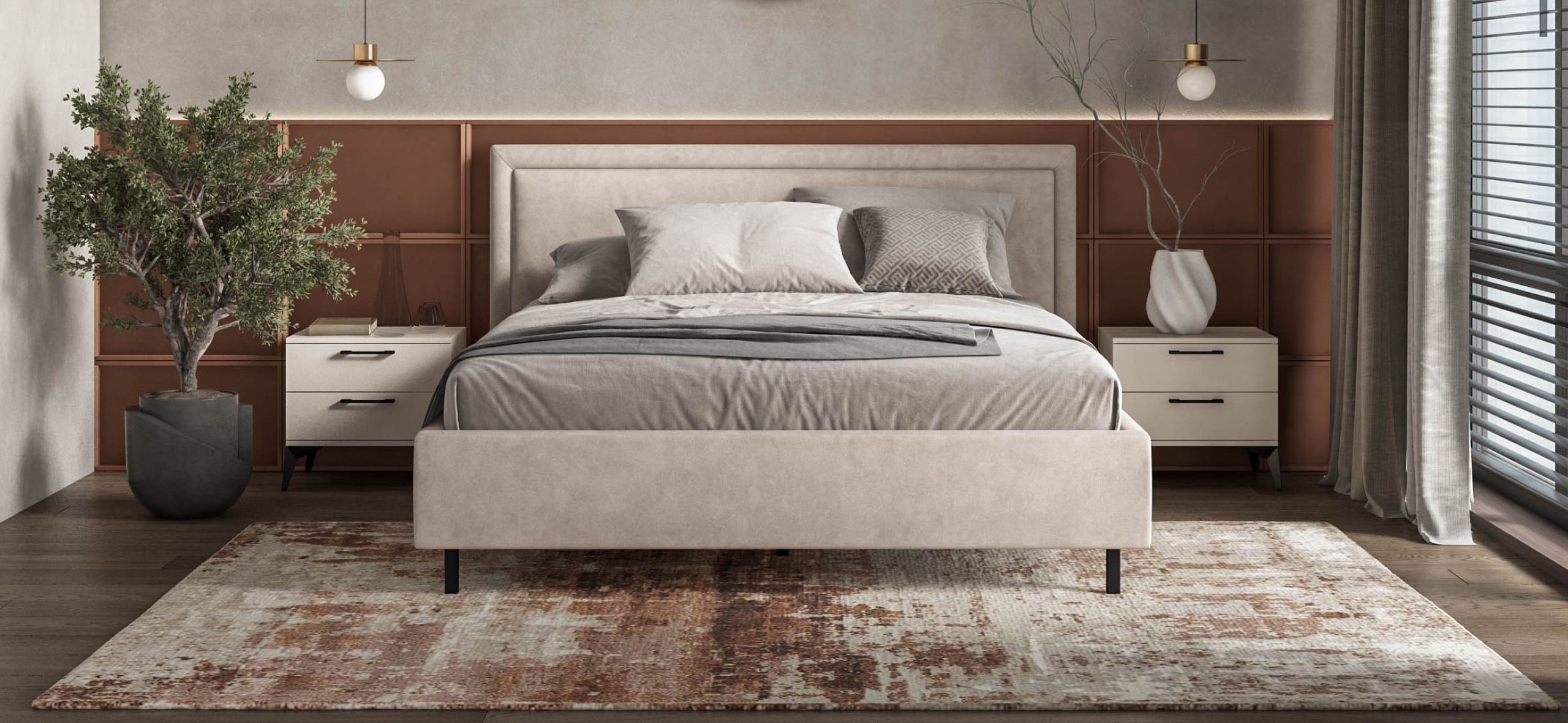 Эта кровать создана для тех, кто ценит тишину, уют и безупречный порядок в пространстве. Она будто обнимает вас мягкими линиями и ненавязчивым, благородным силуэтом. Высокое изголовье с деликатным объемом приглашает устроиться поудобнее — почитать книгу, посмотреть сериал или просто отдохнуть, ощущая приятную упругость за спиной.