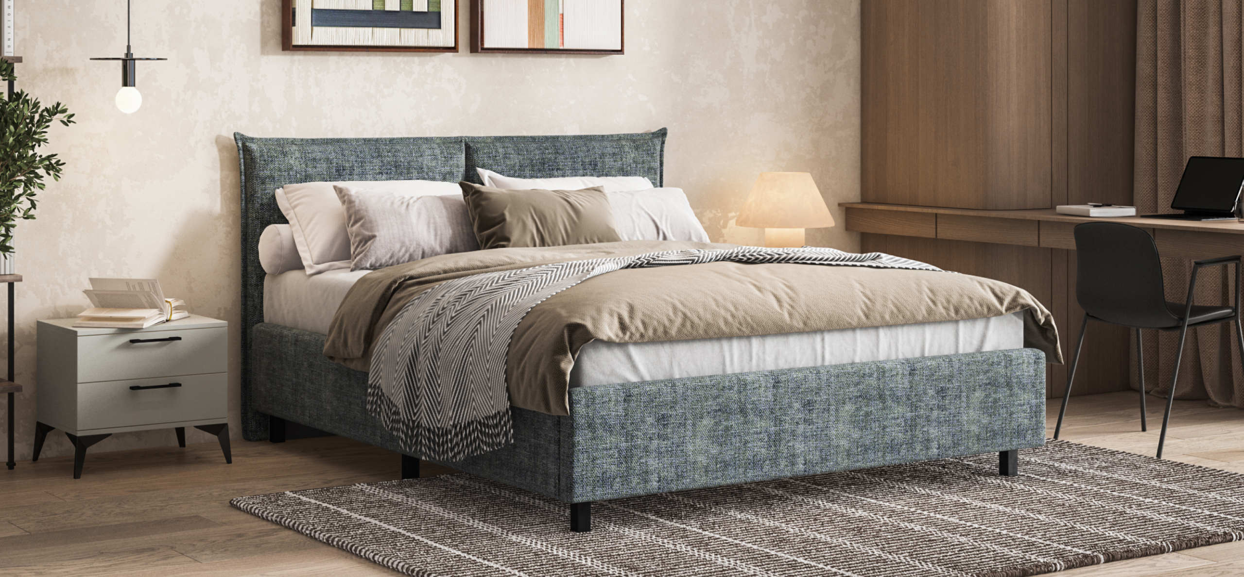 Обивка из ультрамягкого вельвета CORD с бархатистой структурой создаёт уют и комфорт. Оптимальная ширина рубчика придаёт ткани стильный и современный вид, дополняя интерьер и делая отдых перед сном особенно приятным.