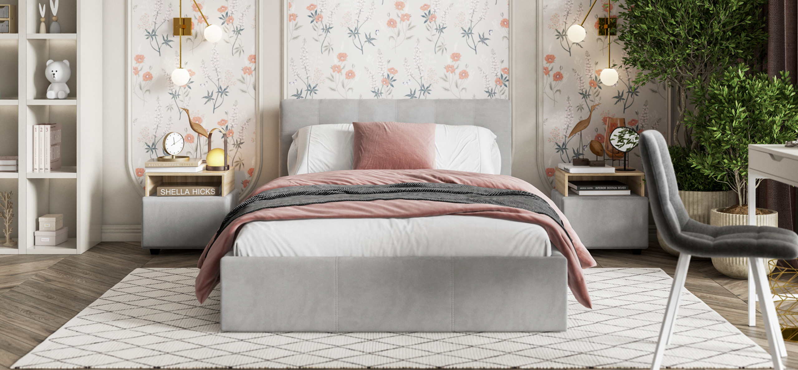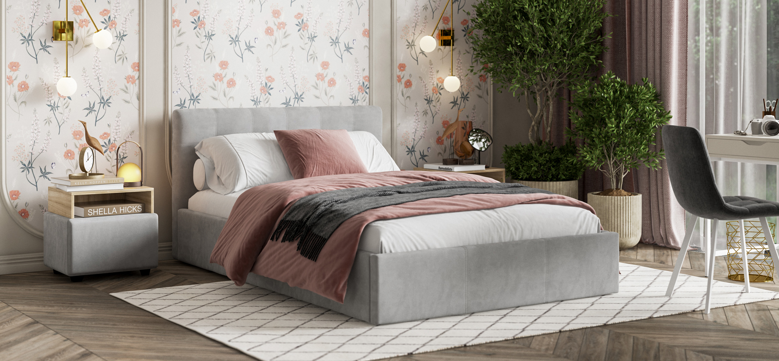 Кровать расположена на уровне пола, что предотвращает накопление пыли под основанием, облегчая уборку и поддерживая гигиену в спальне.