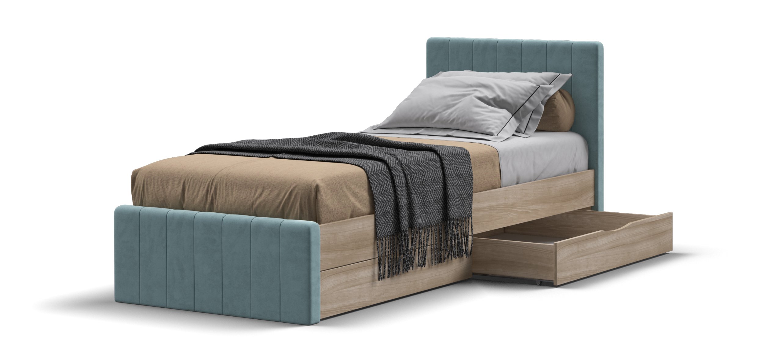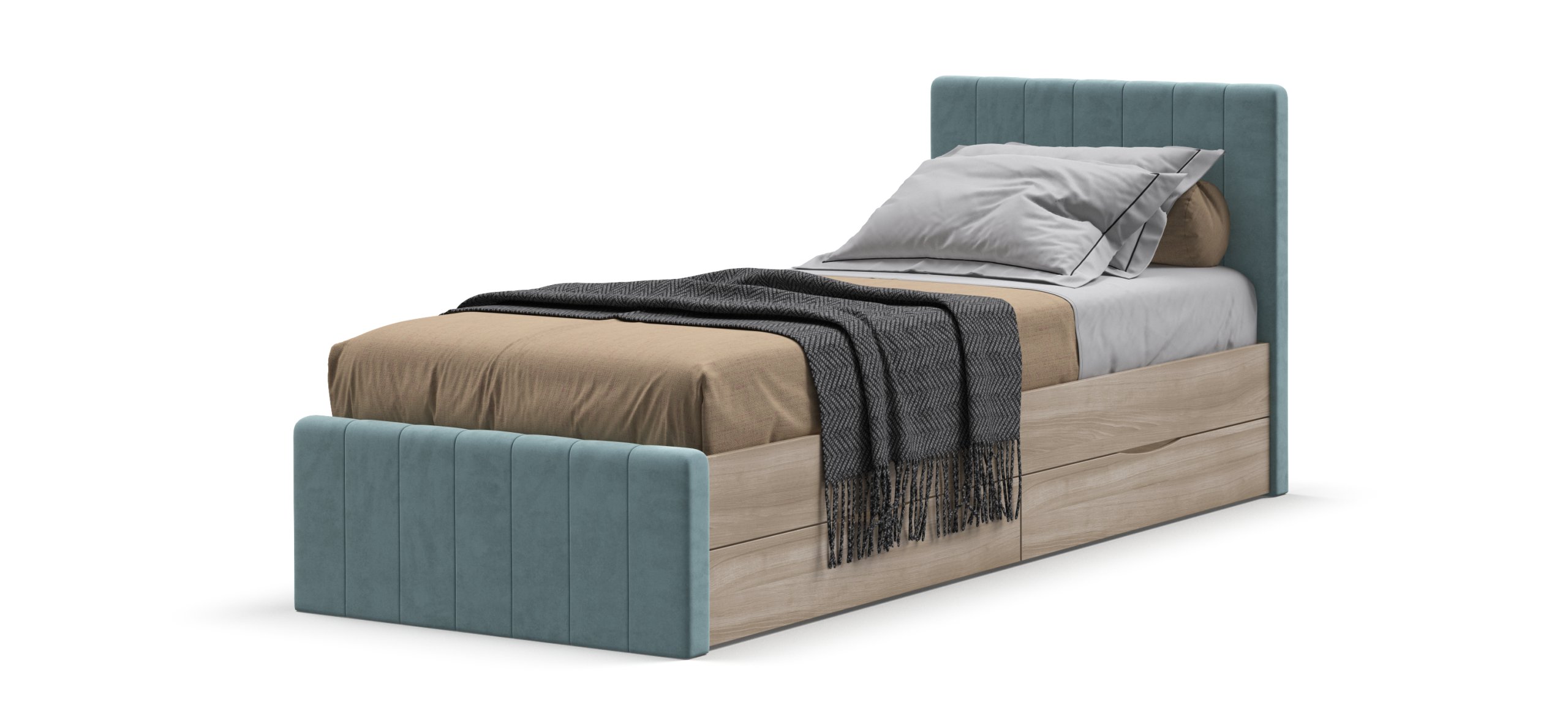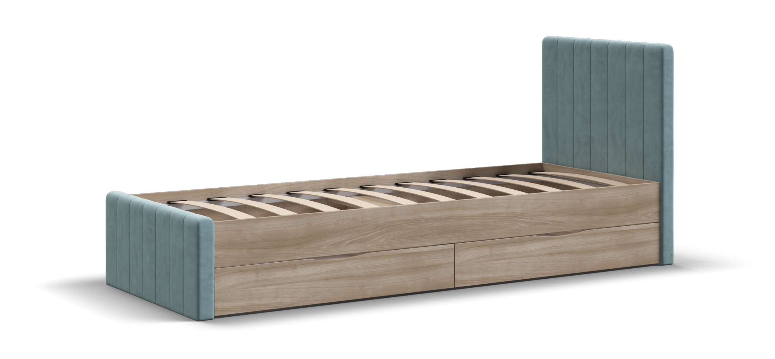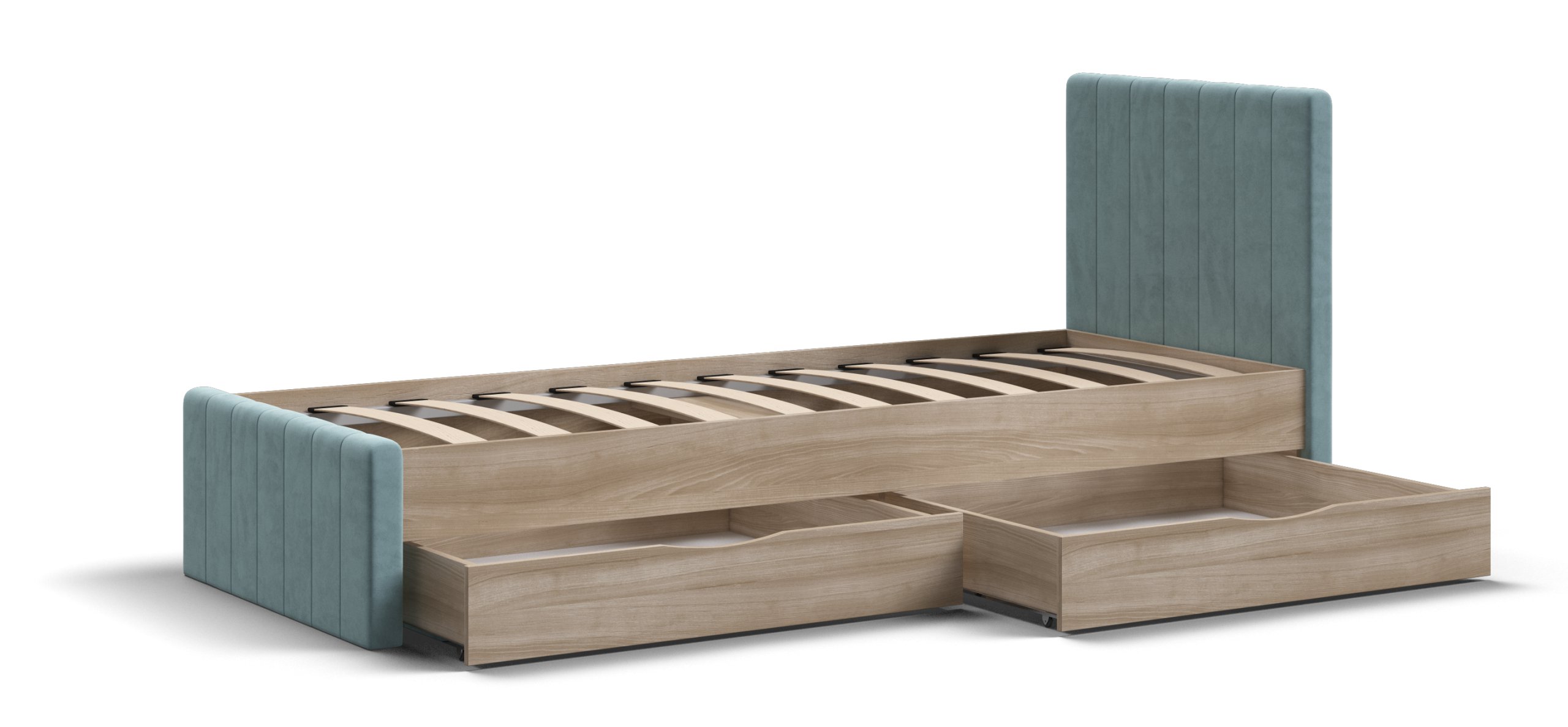 Кровать оснащена двумя выдвижными ящиками на колесиках, которые предоставляют дополнительное место для хранения постельного белья, игрушек и других полезных мелочей. Эти ящики можно установить с любой стороны кровати по вашему желанию. В комплекте также идёт усиленное ортопедическое основание, включающее металлическую разборную раму и упругие берёзовые ламели, что обеспечивает комфортный и здоровый сон. Технология порошковой покраски создаёт качественное и долговечное покрытие.