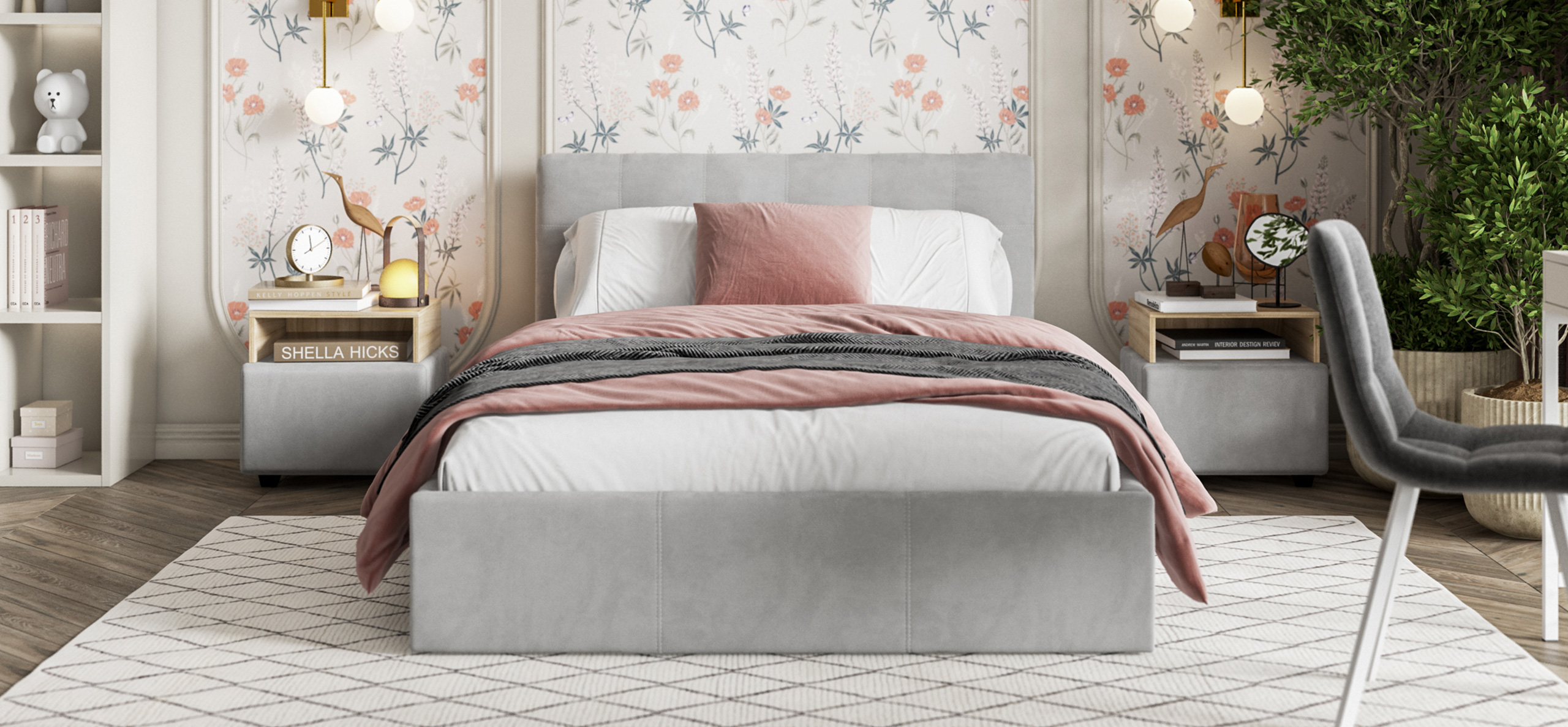 Кровать оборудована декоративными ножками и мягкими углами, что не только придает ей стильный вид, но и обеспечивает безопасность, предотвращая возможные травмы от случайных ударов. Дополнительным преимуществом является наличие бельевого ящика с легко вынимаемым дном, что значительно упрощает процесс влажной уборки.