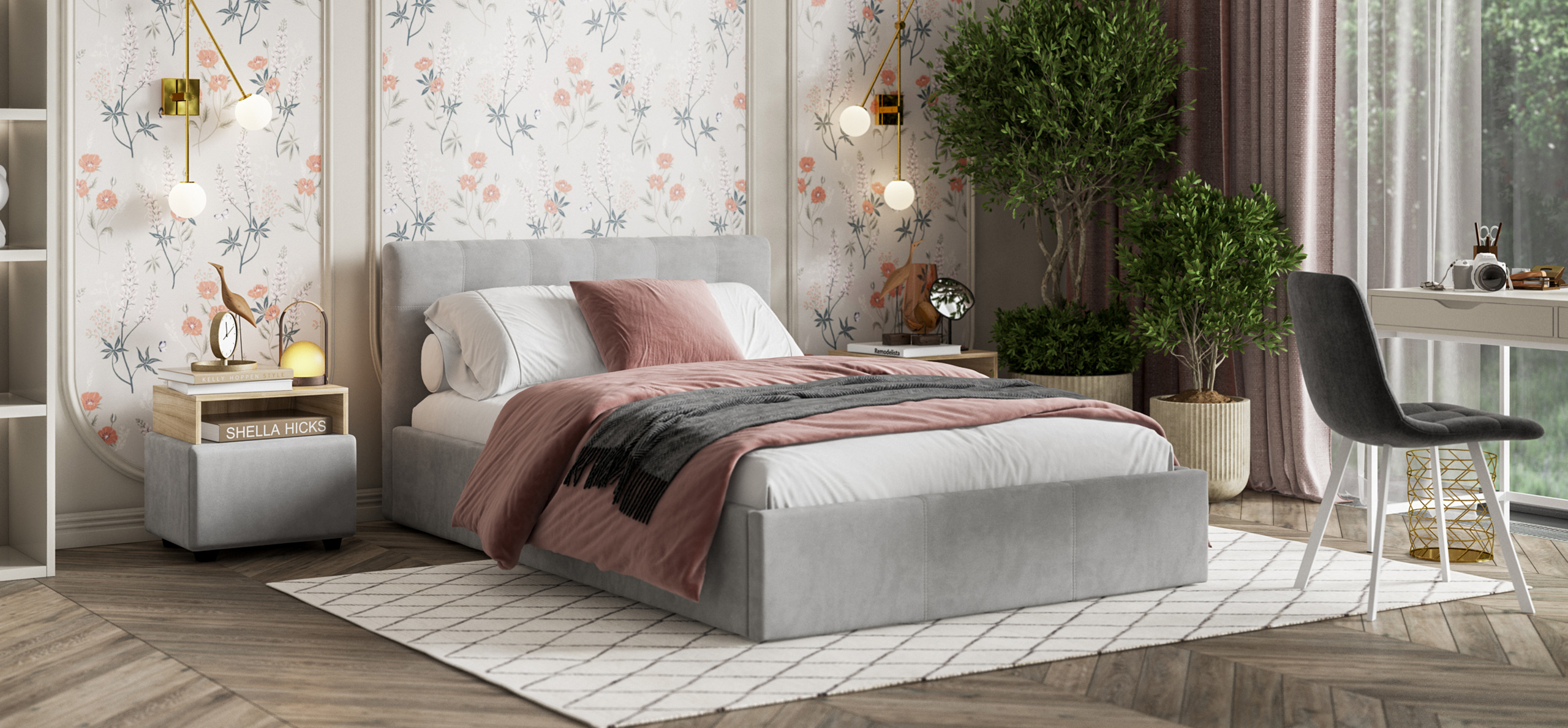 Кровать Белла 140*200 с ПМ велюр Monolit сталь
