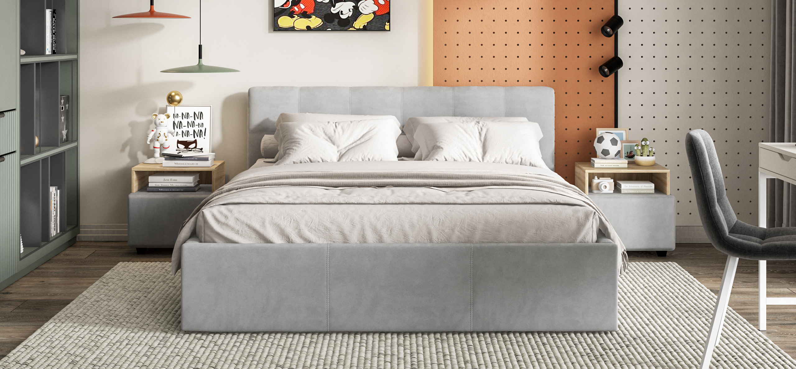Кровать оборудована декоративными ножками и мягкими углами, что не только придает ей стильный вид, но и обеспечивает безопасность, предотвращая возможные травмы от случайных ударов. Дополнительным преимуществом является наличие бельевого ящика с легко вынимаемым дном, что значительно упрощает процесс влажной уборки.
