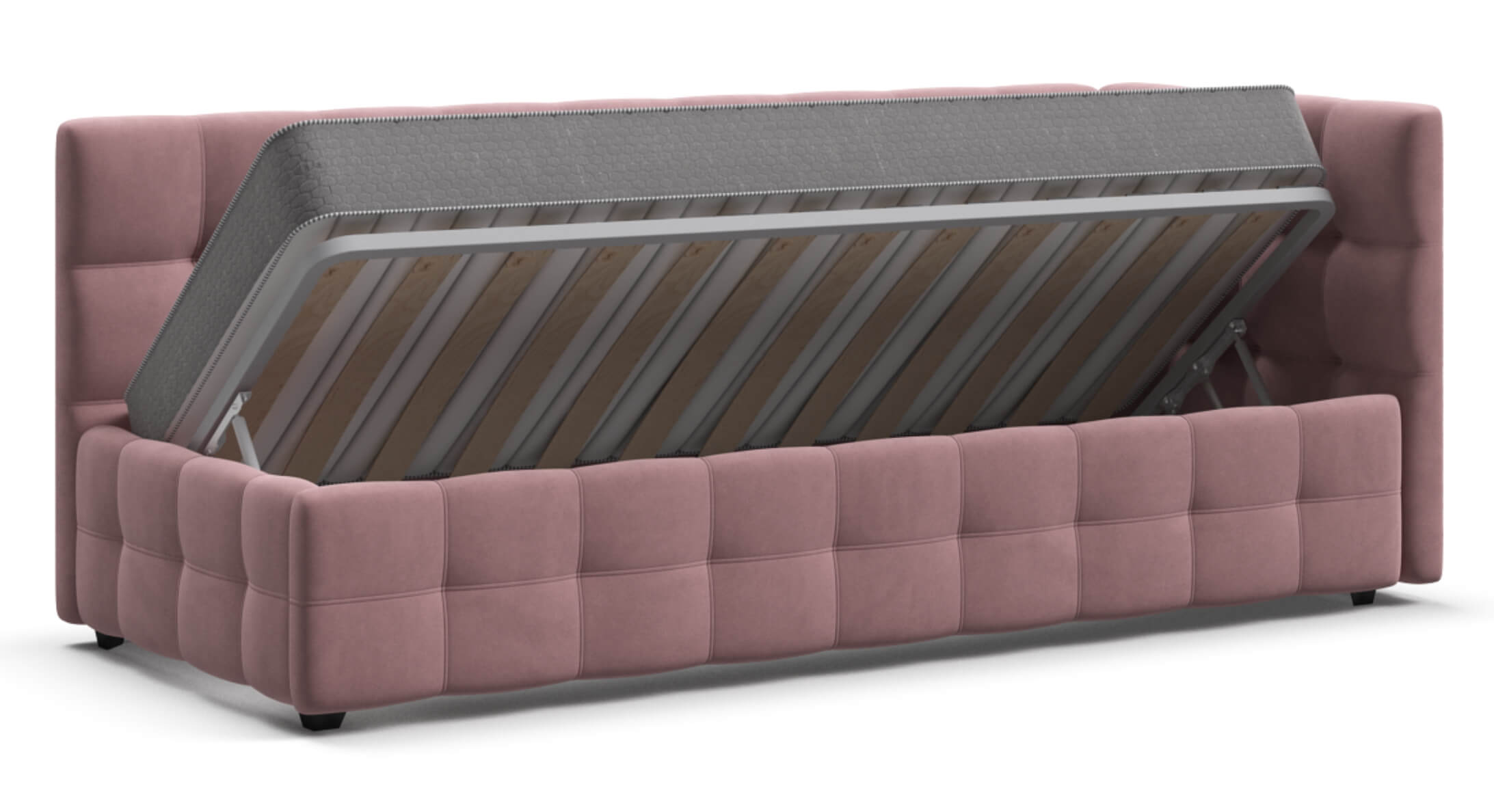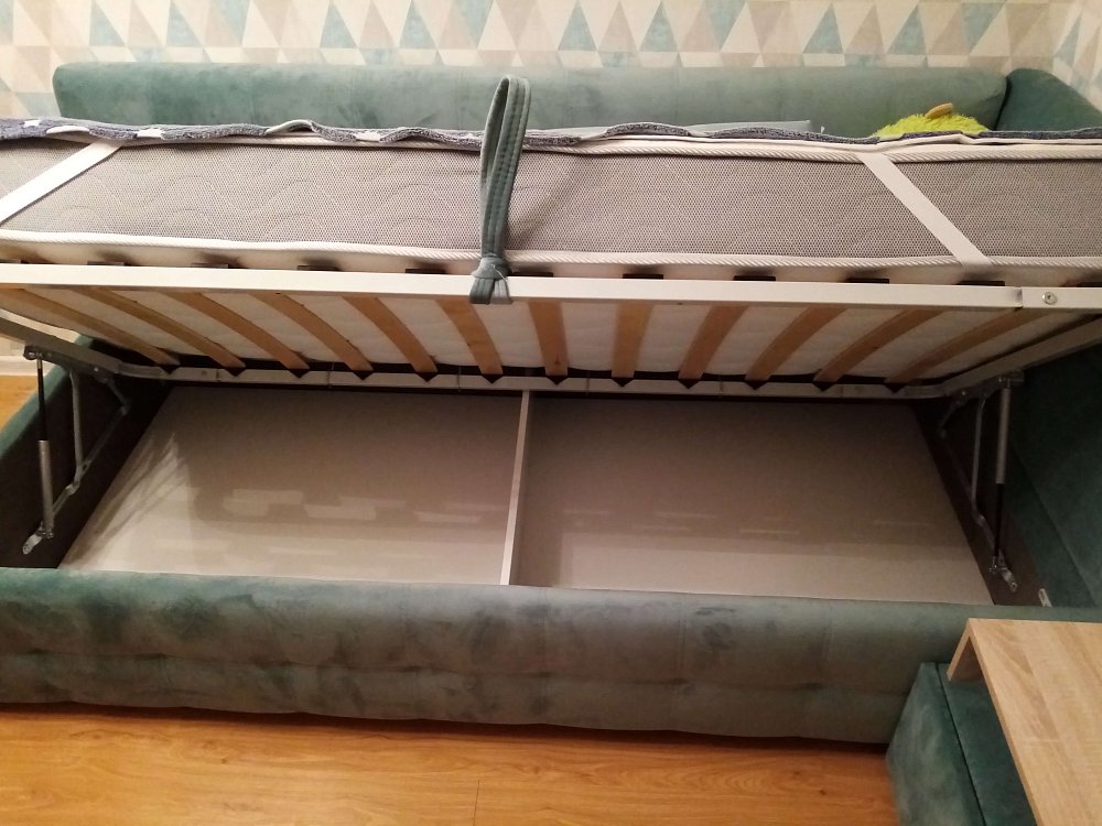 Кровать оснащена вместительным отсеком для хранения HideBox объемом 480 литров. Это позволяет удобно хранить постельное белье, игрушки или другие вещи, освобождая пространство в комнате и поддерживая порядок.
