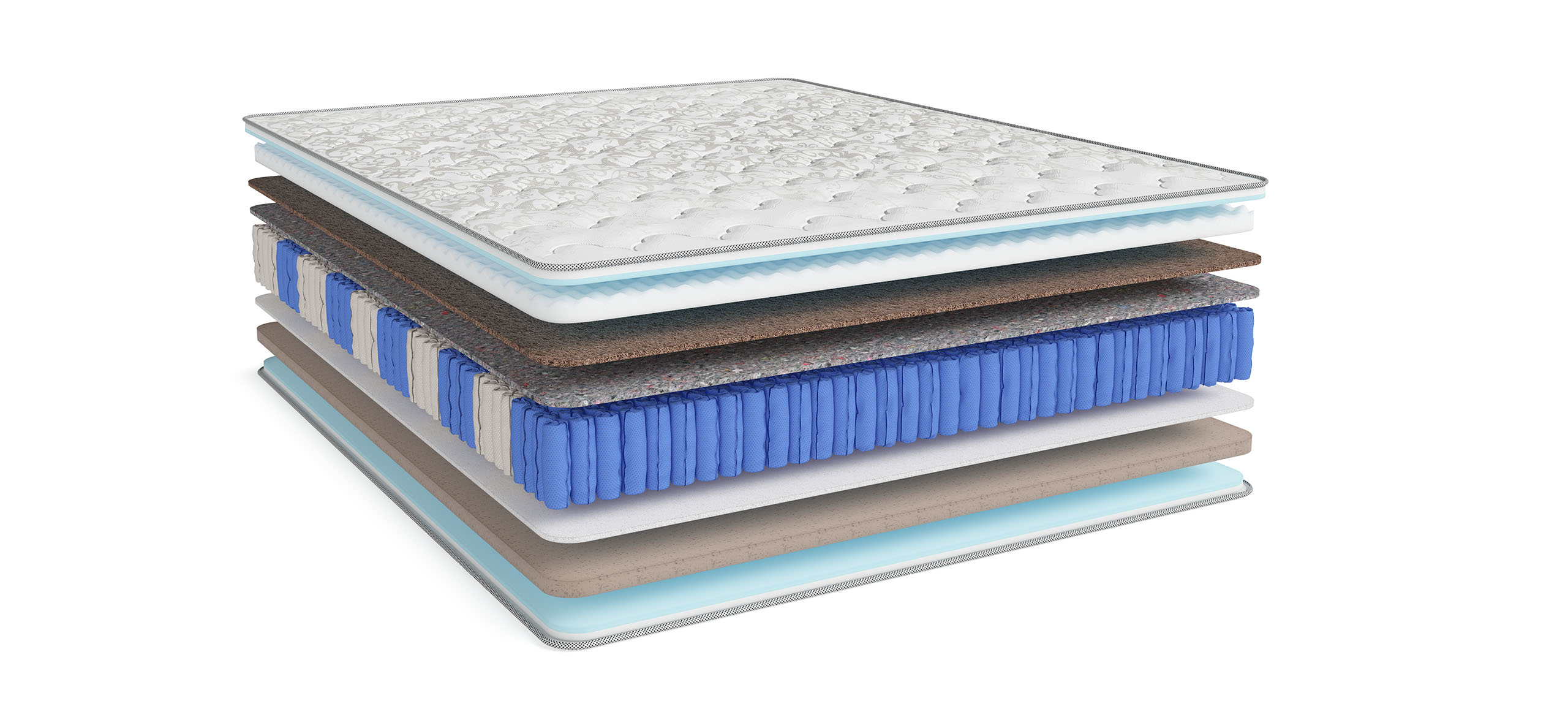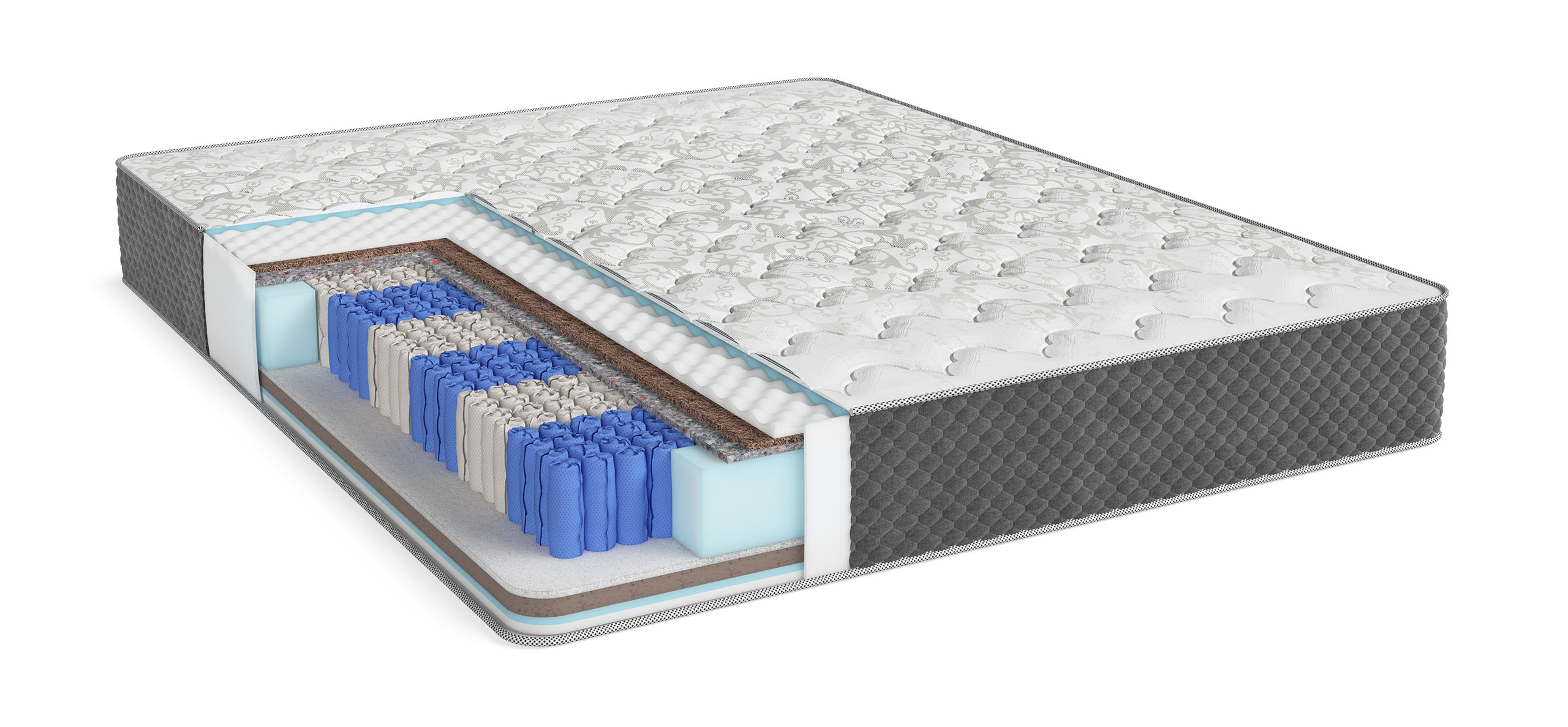 В основе матраса находится пружинный блок KING SPRING 1500 дающий 10 зональную анатомическую поддержку для людей ведущих активный образ жизни: голова, шейный отдел, две зоны поддержки грудного отдела, две зоны поясничного отдела, крестец, бедра, колени, голени. В зависимости от веса используются ряды пружин разной жесткости, что позволяет создать незаметный перепад упругости, способствующий более эффективному расслаблению разных частей тела. Матрас имеет разную жесткость сторон.