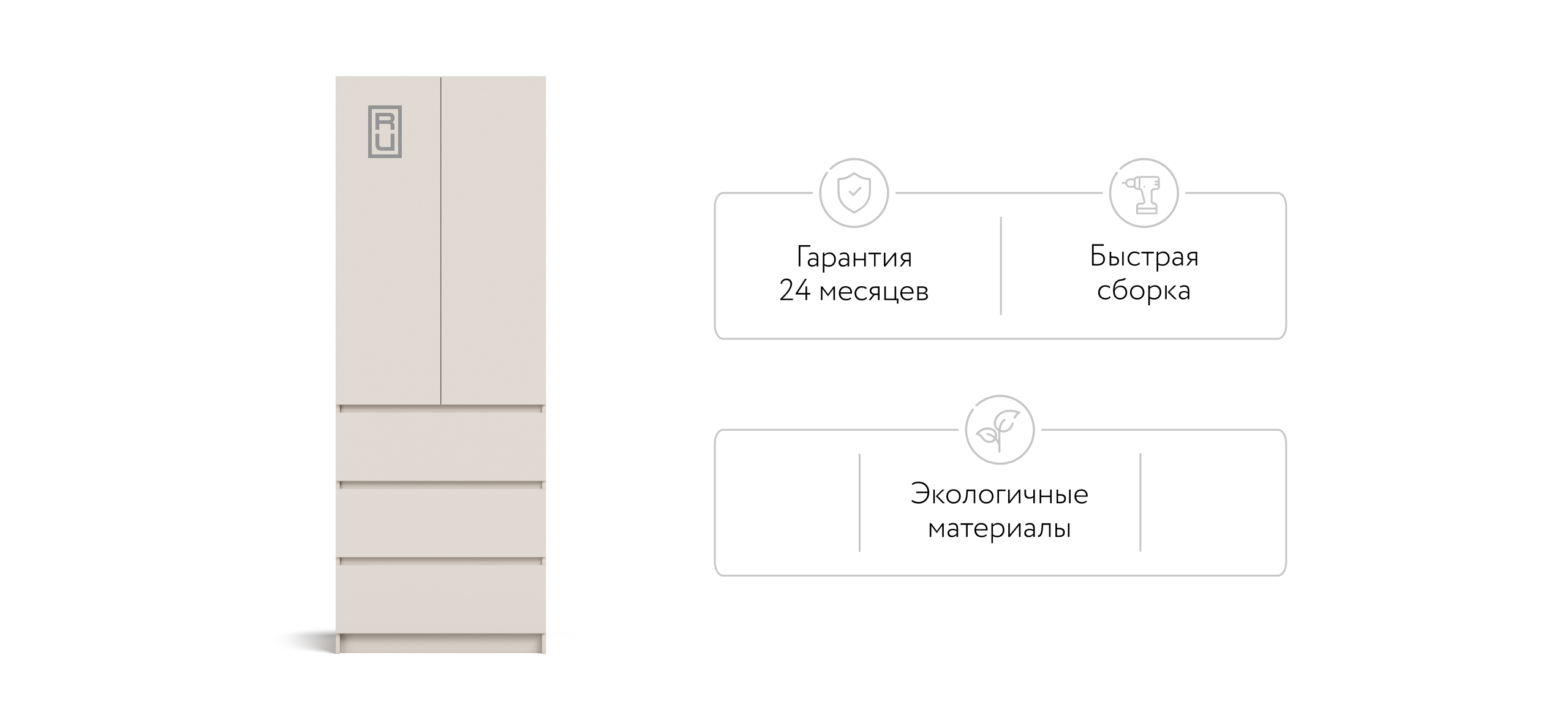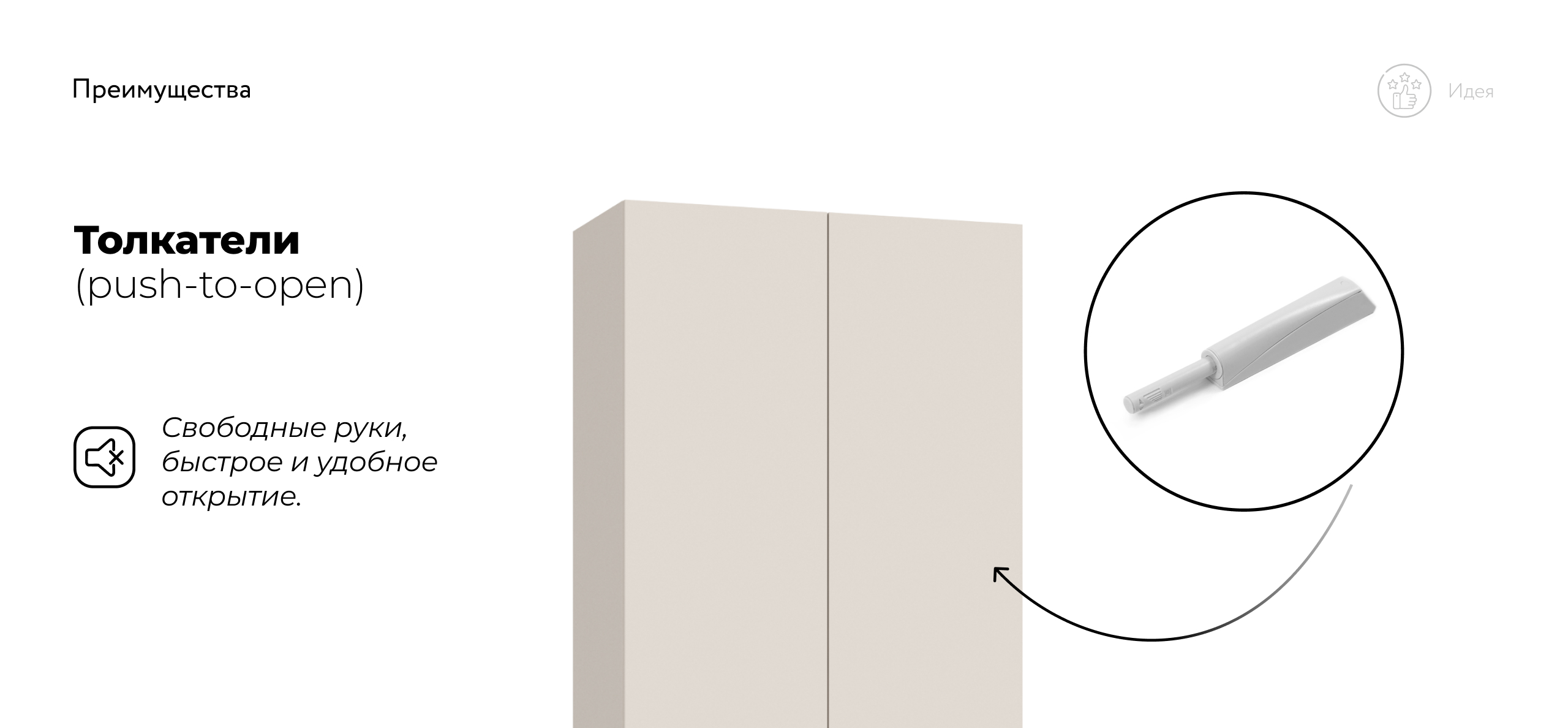 Двери открываются мягко и работают стабильно - без шума, люфта и лишней механики. Надёжный механизм рассчитан на повседневную эксплуатацию.