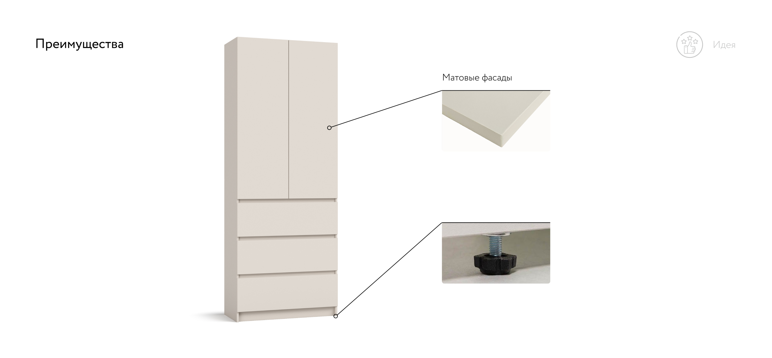 Идея 80 шкаф распашной 2Д+ящики Кашемир