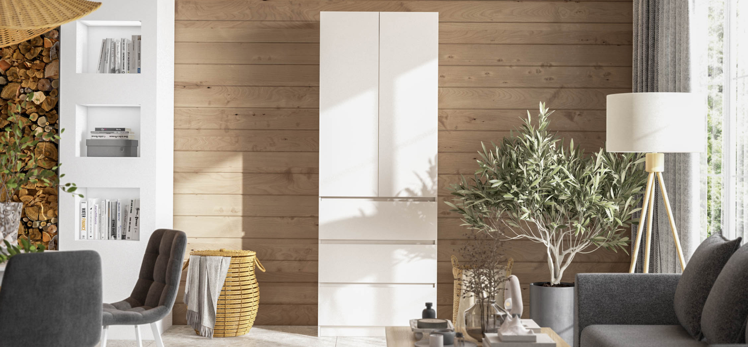 Шкаф становится чётко и ровно на любом покрытии: линии сходятся, зазоры аккуратные, двери ходят тихо и стабильно. Материалы — практичные и безопасные для дома (ЛДСП Е1), кромки аккуратно обработаны, чтобы внешний вид держался годами.