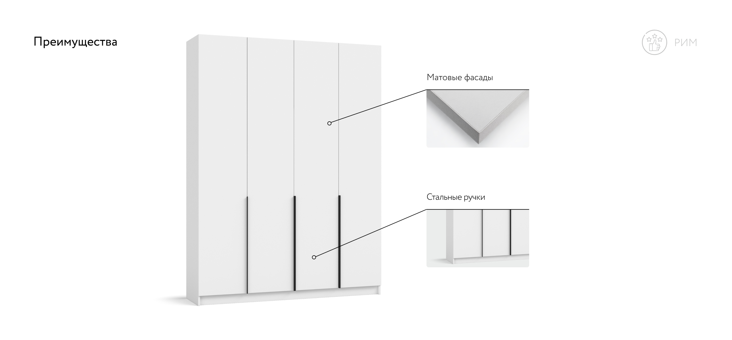 Шкаф Рим 160 — масштабное решение для тех, кто хочет хранить много и держать интерьер в современных трендах. Лаконичный фасад с удлинёнными чёрными ручками отражает эстетику 2025 года и становится выразительным акцентом любой спальни — от сканди до неоклассики. Увеличенная ширина и симметричная конструкция позволяют разместить сезонный гардероб, обувные коробки и текстиль так, чтобы в комнате осталось больше свободного пространства.