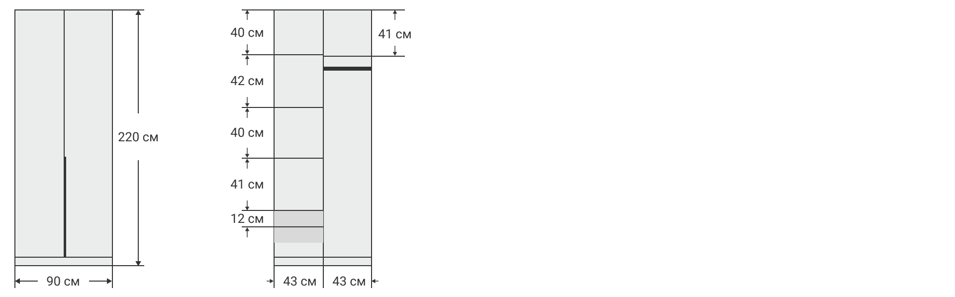 Гибкая компоновка превращает Рим 90 в персональный конструктор хранения. Полки и два выдвижных ящика можно расположить справа или слева — как подсказывает планировка и ваши привычки. Ящики на шариковых направляющих выходят плавно и бесшумно, а створки открываются лёгким движением, не нарушая утренний ритм.