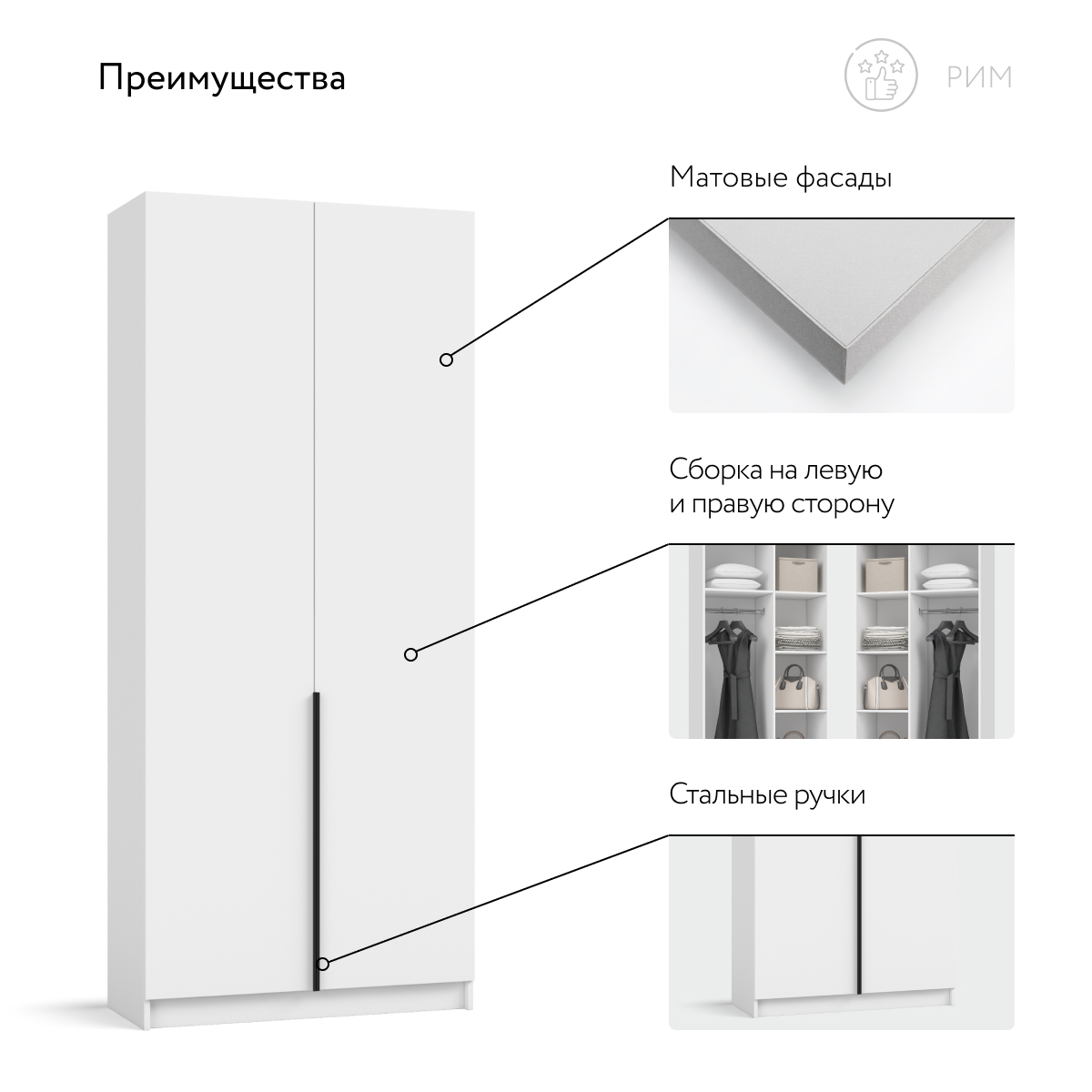 Корпус выполнен из безопасной ЛДСП класса Е1 с износостойким покрытием, чтобы цвет и фактура радовали долгие годы. Рим 90 вносит порядок и лёгкость даже в небольшое пространство, превращая спальню или студию в гармоничную, «дышащую» зону комфорта. Выберите шкаф, который хранит вещи аккуратно и создаёт стильный порядок в вашей жизни.