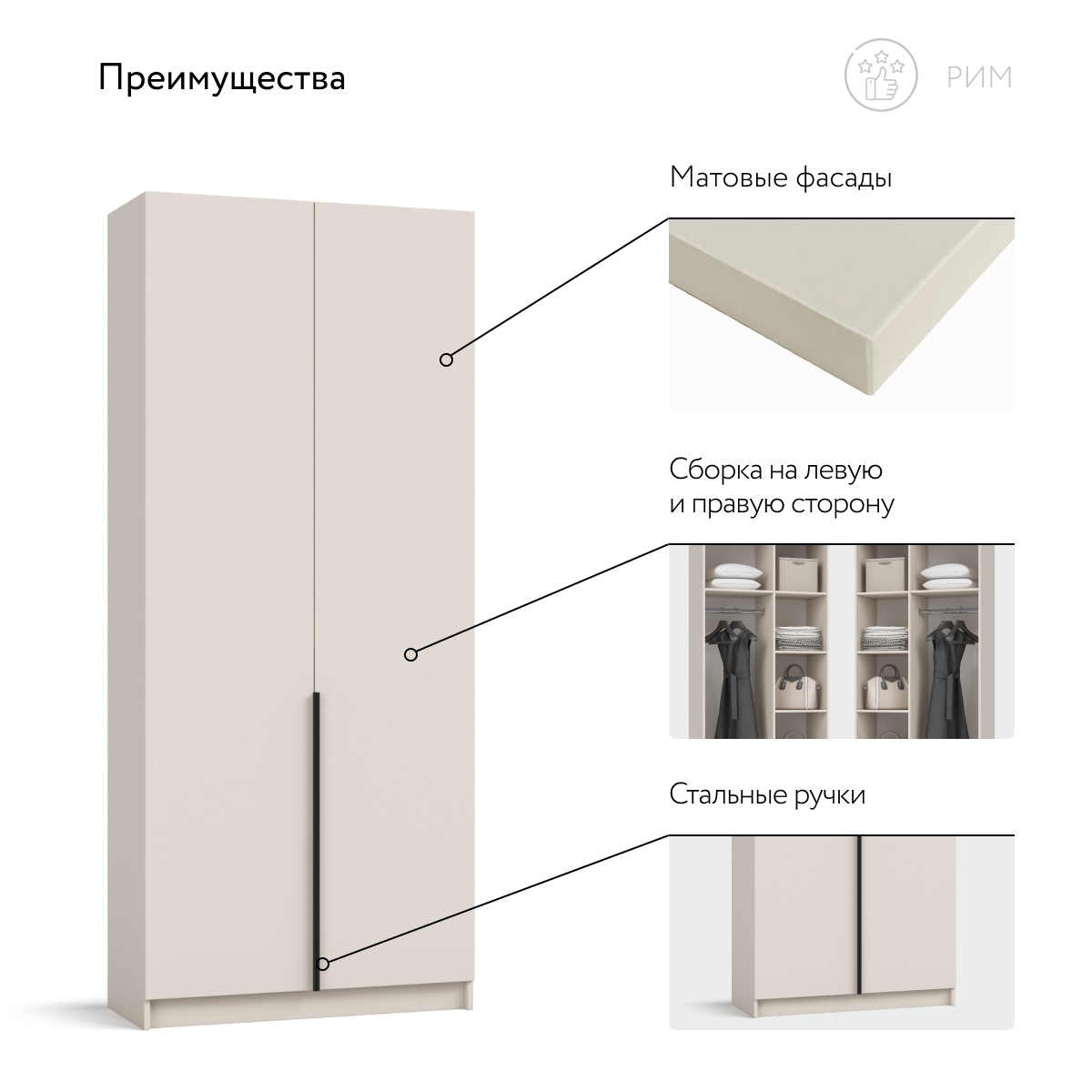 Корпус выполнен из безопасной ЛДСП класса Е1 с износостойким покрытием, чтобы цвет и фактура радовали долгие годы. Рим 90 вносит порядок и лёгкость даже в небольшое пространство, превращая спальню или студию в гармоничную, «дышащую» зону комфорта. Выберите шкаф, который хранит вещи аккуратно и создаёт стильный порядок в вашей жизни.