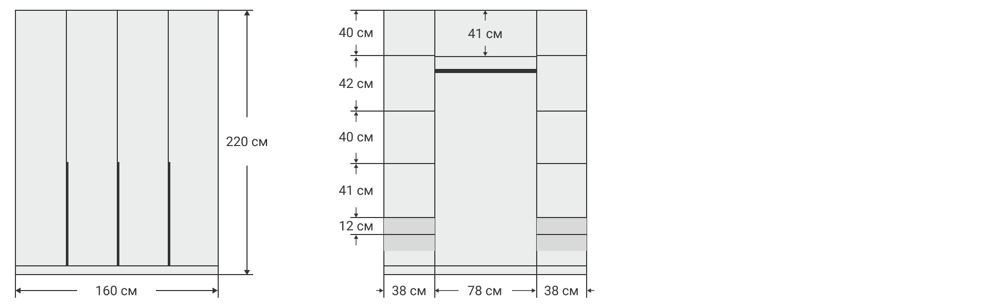 160x53x220 см