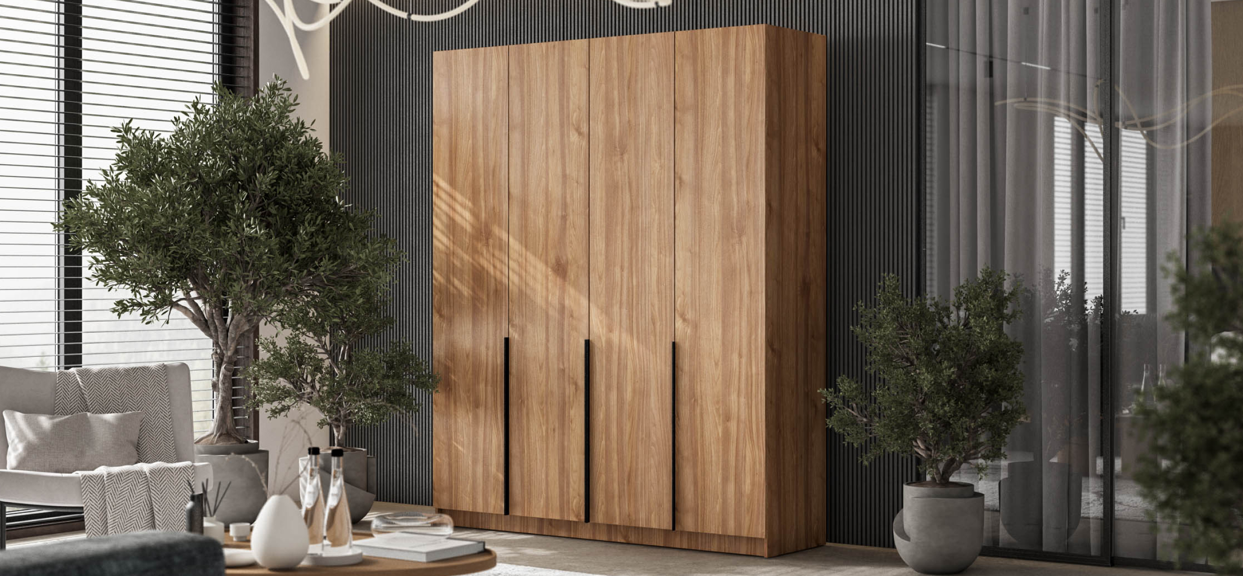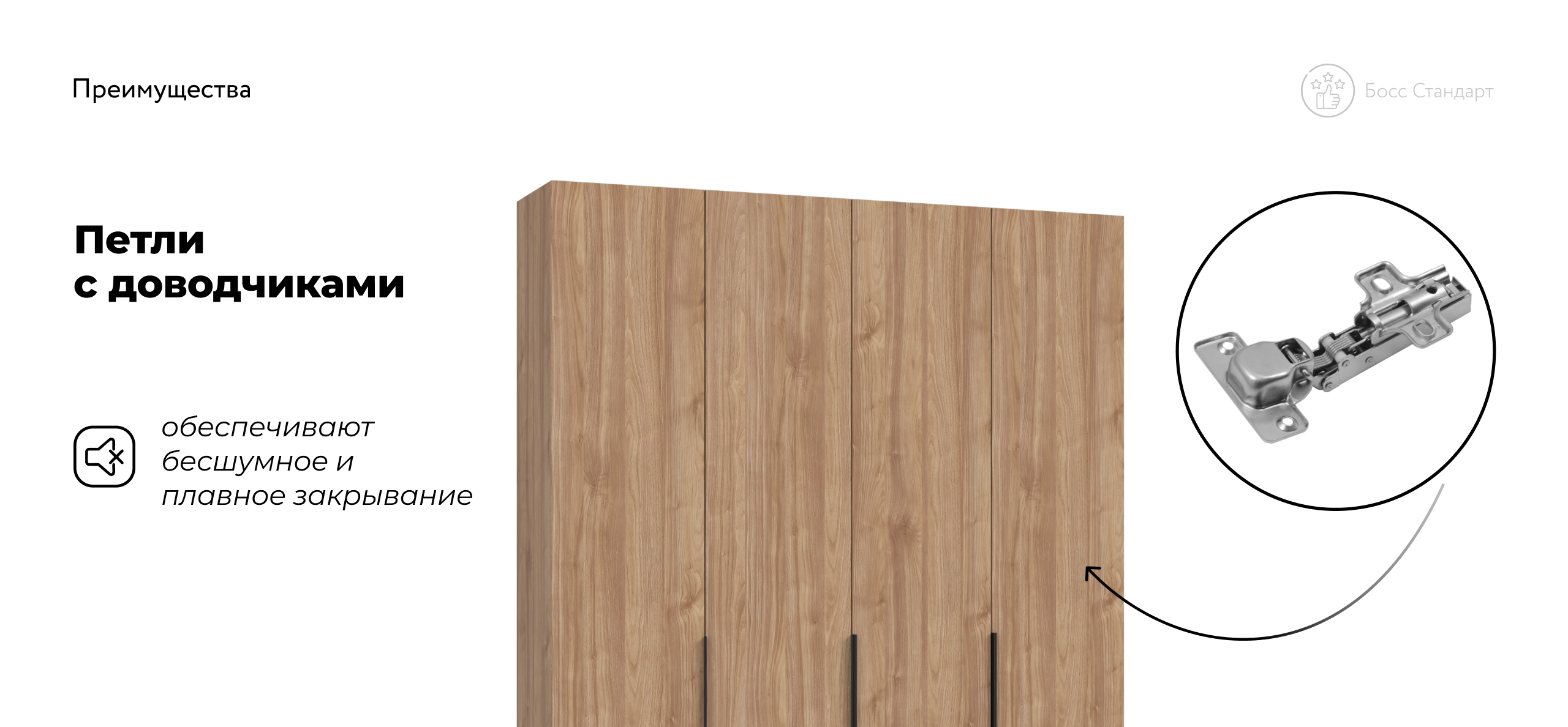 Шкаф Босс Стандарт 180 — масштабное, статусное решение для тех, кто хранит многое и ценит интерьер в трендах. Лаконичный фасад с удлинёнными чёрными ручками отражает эстетику 2025 года и становится выразительным акцентом любой спальни — от сканди до неоклассики. Увеличенная ширина и симметричная конструкция свободно принимают сезонный гардероб, обувные коробки и текстиль, сохраняя в комнате больше свободного пространства.